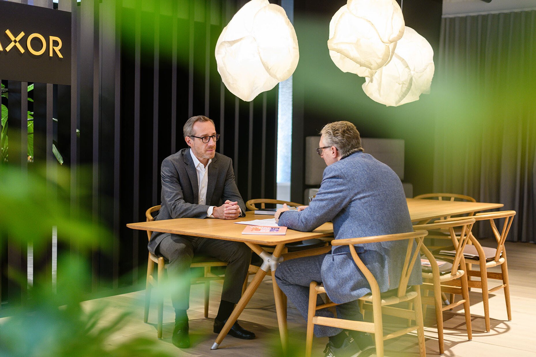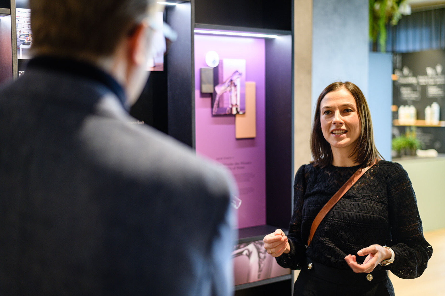 Olivier Sogno: Steffen und Rebecca bringen die vorher angesprochenen zehn Inititativen mit ihren Teams vorran, aber die erfolgreiche Transformation zu einer "Green Company" kann nur dann gelingen, wenn der sogenannte Green Mindset, das Bewusstsein für die Nachhaltigkeit im Unternehmen, in jedem Teammitglied verankert ist, vom Einkauf bis zum Produktmanagement. Einen großen Beitrag dazu leistet auch das Innovations Lab – viele der Produktlösungen für eine nachhaltigere Zukunft haben hier und im Produktmanagement ihren Ursprung. Parallel sprechen wir mit den DesignerInnen darüber, wie sich zum Beispiel der Materialverbrauch schon im Entwurf mit Hilfe der Gestaltung reduzieren lässt. Das gilt auch für die Präsentation auf Messen – wenn man einen Messestand einmal aufbaut und ihn danach wegwirft, ist das nicht nachhaltig.