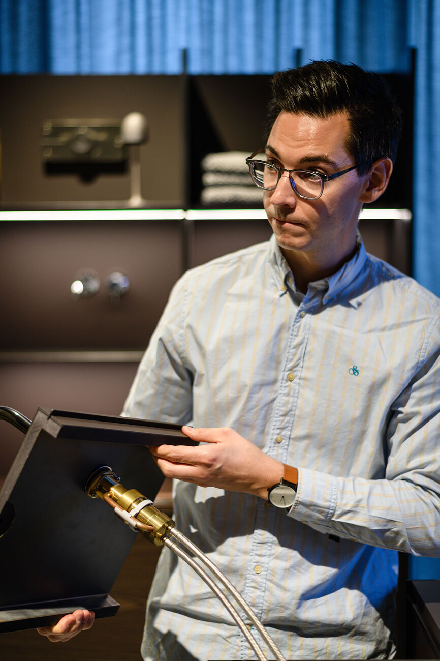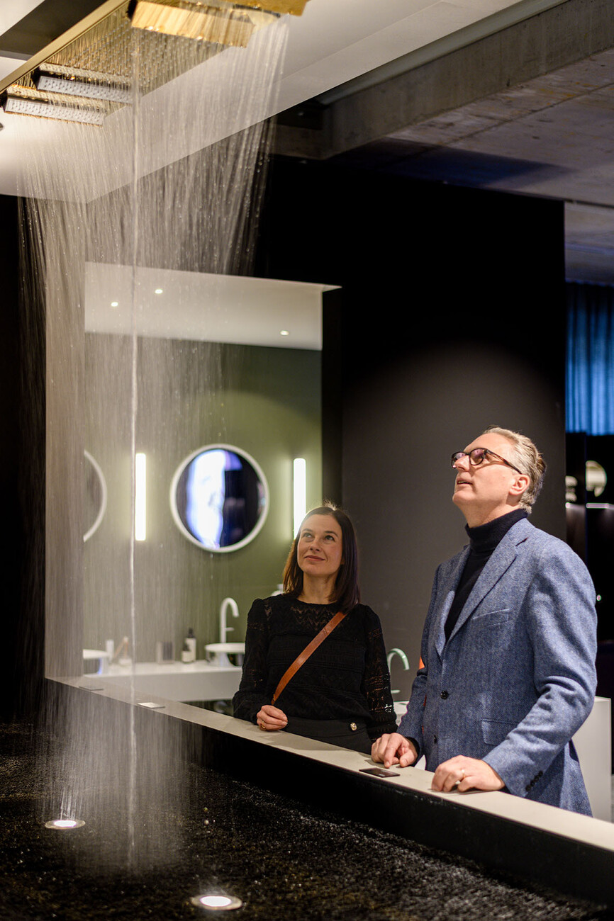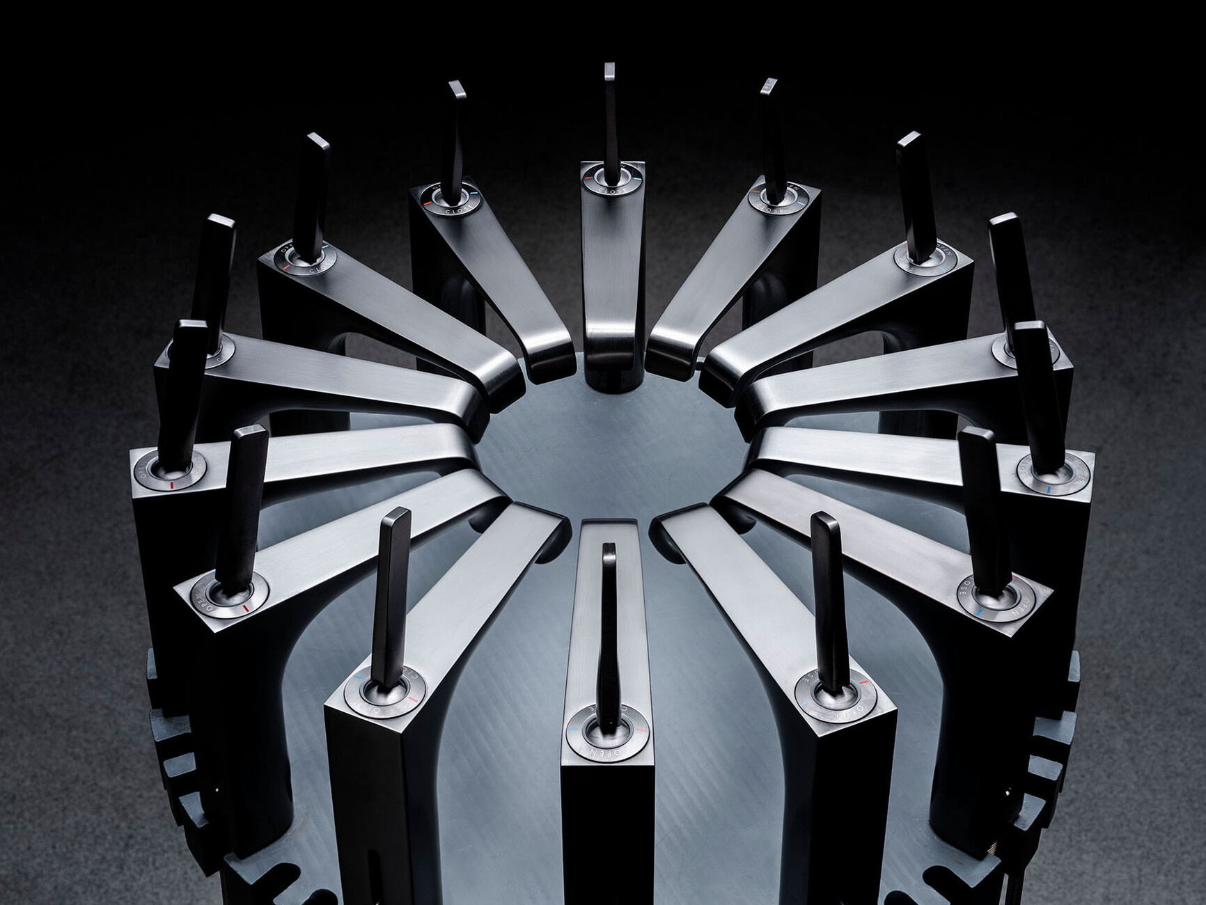 Olivier Sogno: Du hast das Schlüsselwort gesagt, Zusammenarbeit. Es ist nicht ein kreativer Kopf alleine. Wir können die passgenaue Technologie bieten, die DesignerInnen die kreative Idee, das Ergebnis ist das Beste der zwei Welten. Zudem wissen beispielsweise Philippe Starck, Antonio Citterio oder Barber Osgerby, um nur mal drei Gestalter zu nennen, auch sehr viel über die Einbautechnik, die Verwendung, denn sie arbeiten meist auch in der Architektur. Sie sind parallel unsere Kundinnen und Kunden für ihre eigenen Projekte und wissen, was in der Praxis funktioniert. Gemeinsam erarbeiten wir die beste Lösung. Wenn wir eine Idee sofort umsetzen können, ist es meist ein Hinweis darauf, dass etwas zu einfach ist, das wir nochmal genauer hinschauen sollten.