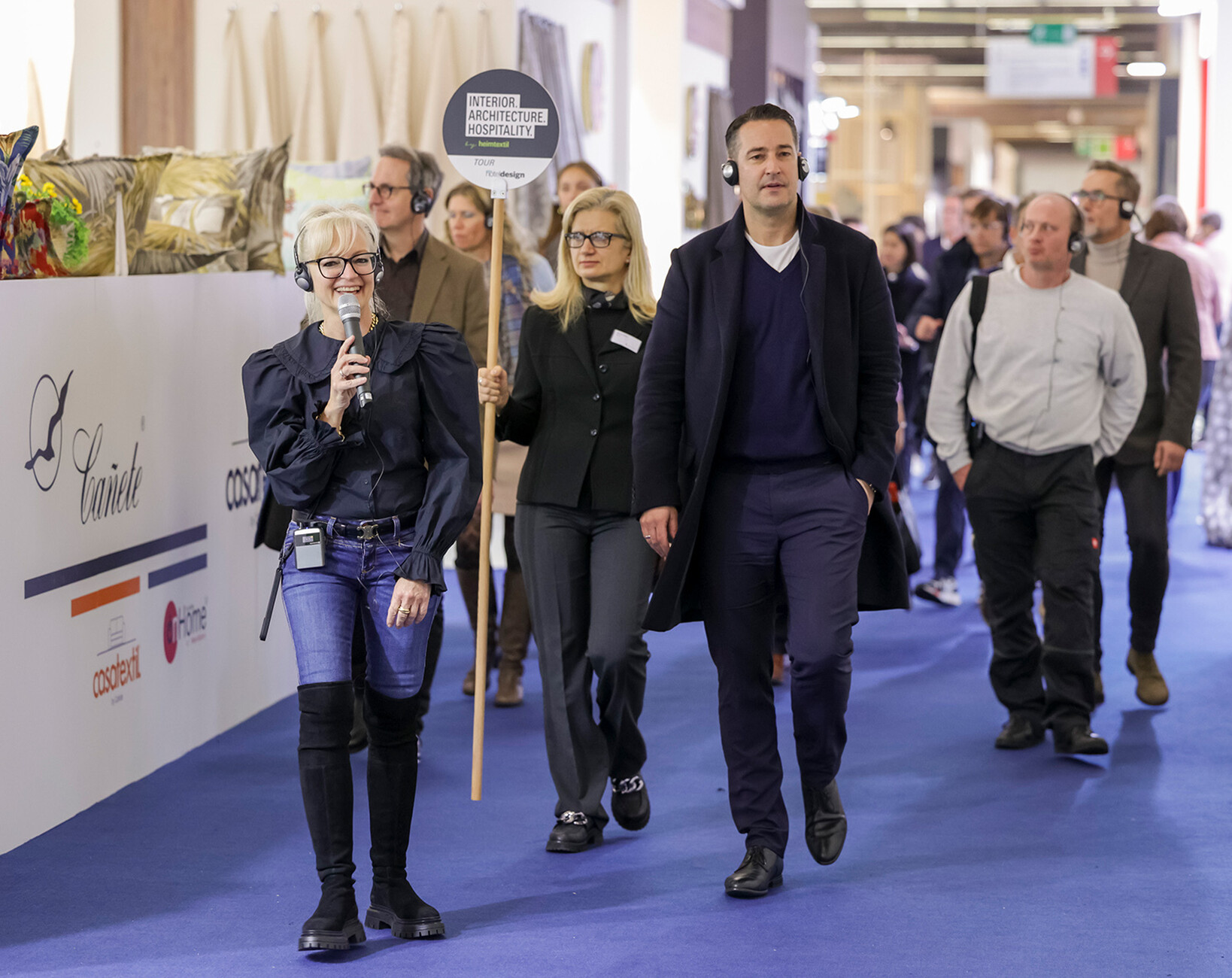 Das Interior.Architecture.Hospitality-Herzstück ist die kuratierte und aufwändig inszenierte Library. In der Halle 4.0 werden von einer Jury ausgewählte Textilien mit funktionalen Eigenschaften präsentiert. 2024 stehen die neu selektierten Eigenschaften schwer entflammbar, schalldämmend, lichtbeständig, antimikrobiell, schmutzabweisend und scheuerbeständig im Fokus. In geführten Library Tours erklärt die Jury die Besonderheiten der ausgewählten Produkte und warum sie selbige ausgewählt haben. Auch das Angebot an geführten Messetouren sowie das Bühnenprogramm wird im Januar 2024 noch internationaler sein. Mit Tours und Talks & Tours ist es der erste Anlaufpunkt für Orientierung und Information. Renommierte ExpertInnen führen zu ausgewählten AusstellerInnen, sprechen über Einsatzmöglichkeiten und führen zu ihren persönlichen Highlights. Alle Touren und das Vortragsprogramm sind im Eventkalender zu finden.