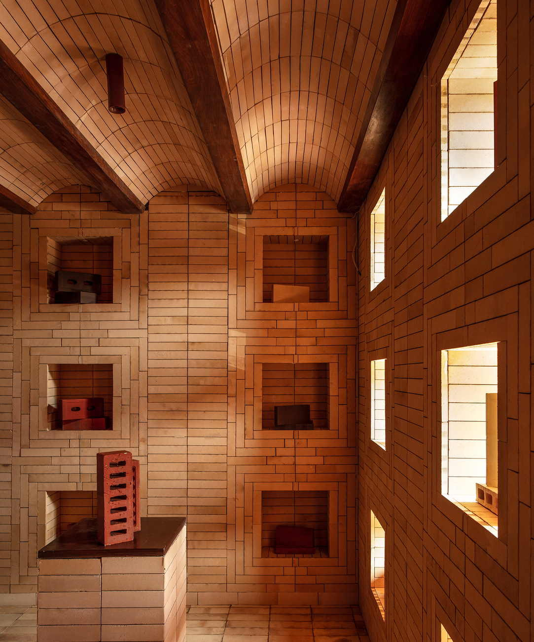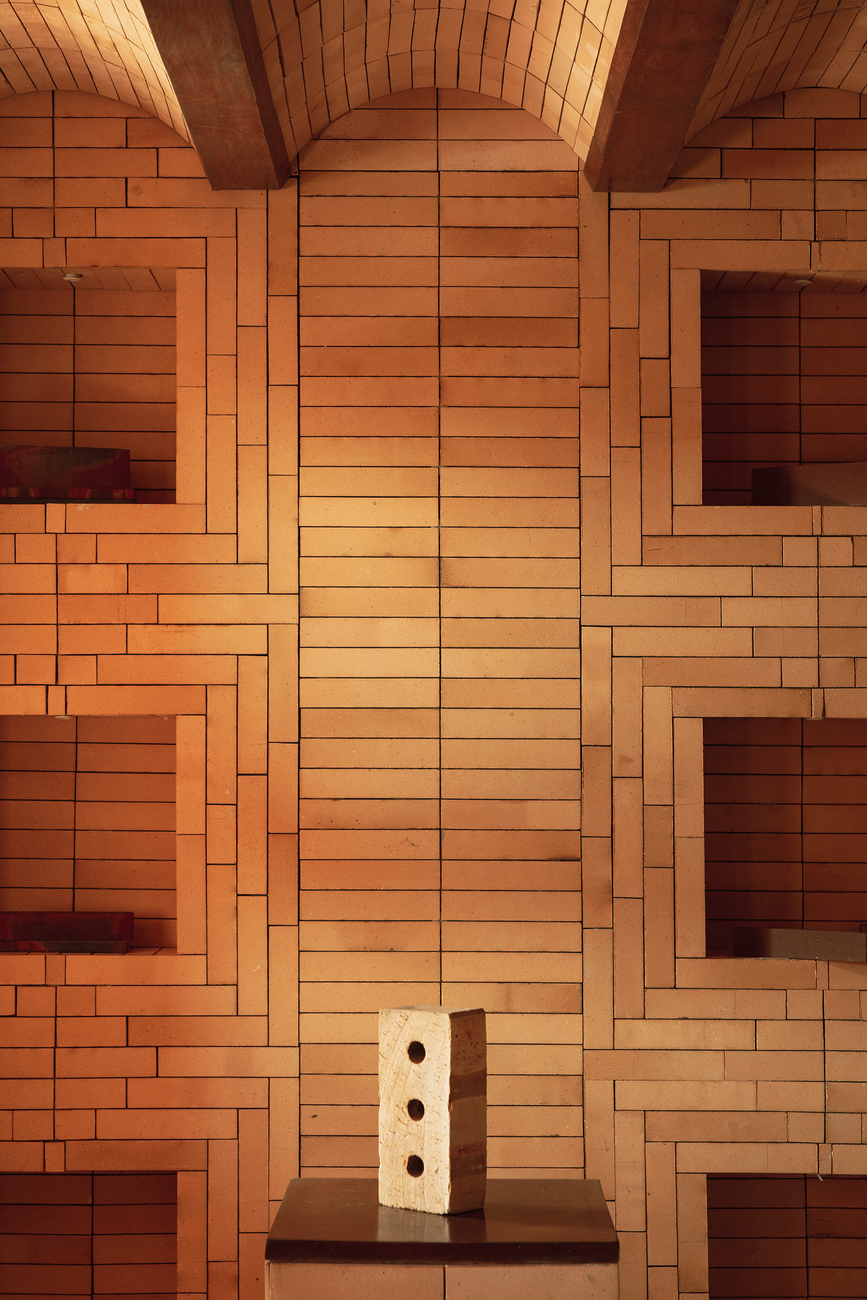 Was sie auszeichnet, ist eine besondere Arbeitsweise. Renesa versucht, traditionelles Handwerk mit modernster digitaler Technologie zu verbinden. "Wir schätzen Innovation mehr als alles andere", sagt Sanchit Arora. "Wenn wir etwas entwerfen, beschränken wir uns nicht auf die Details der Ausführung, sondern konzentrieren uns auf die Schaffung von etwas, das Einfallsreichtum und Identität in sich trägt. Der Prozess fließt vom Papier zum Bildschirm und auf die Website." Eines ihrer jüngsten Projekte, "The Brick Bond" für Jindal Mechno Bricks, New Delhi, ist eine moderne Interpretation eines Ziegelofens. Die Grundidee bestand darin, einen Raum zu schaffen, der sowohl markenspezifisch als auch markenorientiert ist: Der Kunde ist Indiens führende Marke für modulare Ziegel und hat ein berühmtes Erbe seines Handwerks, das weitergeführt werden soll. Der Designimpuls drehte sich um die Konzeptualisierung eines resonanten architektonischen Markenethos", das das vorliegende Erlebniszentrum und die Veranstaltungsorte auf der ganzen Welt definieren könnte. Mit dem Fokus auf den Lebenszyklus eines jeden Ziegels, von seiner irdischen Entstehung bis zu seinem Brennen, wurden die Innenräume als ein zeitgenössisches Eintauchen in die Kammern eines klassischen Ziegelofens interpretiert.