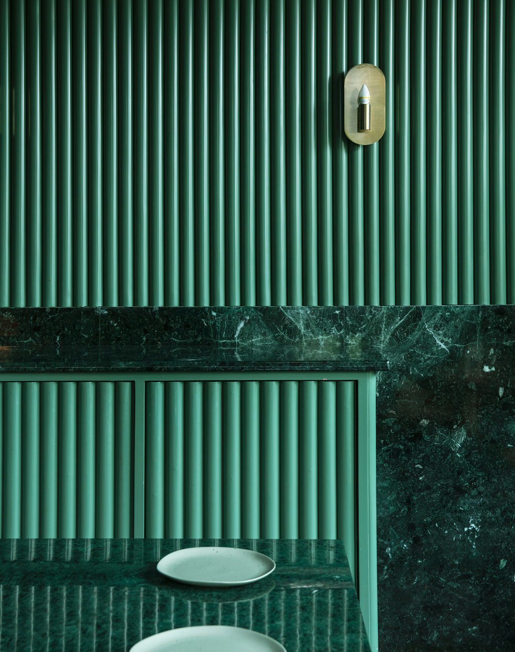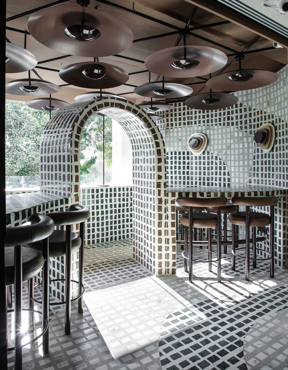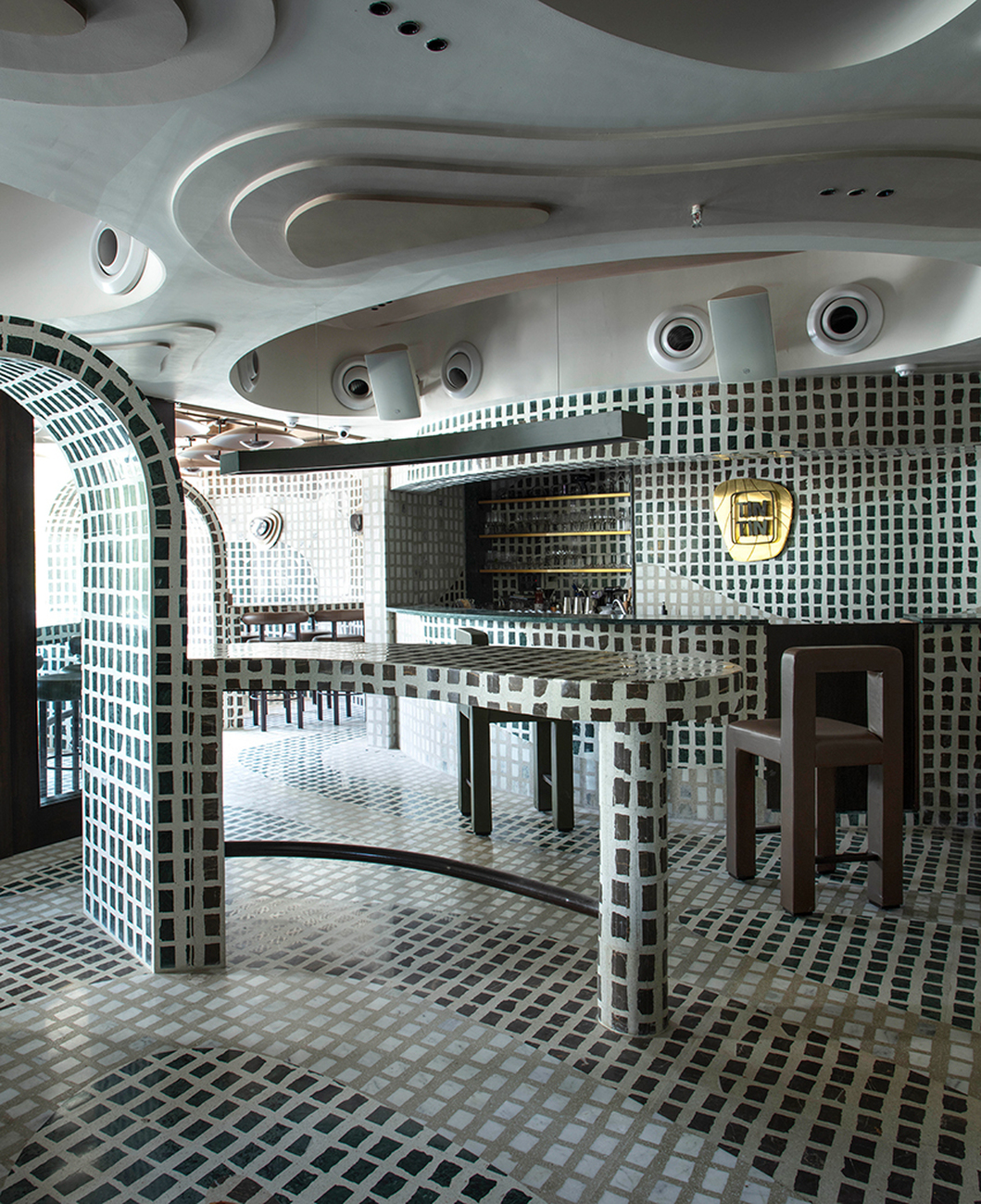 Entwürfe aus verschiedenen architektonischen Epochen, Ideologien und Konzepten miteinander zu einem großen Ganzen verschmelzen lassen – diesen Ansatz, den das indische Architektur- und Designstudio Renesa bereits in ihrem Namen trägt übersetzt das Team in eindrucksvolle Inneneinrichtungen: zum Beispiel für das "Tin Tin" in Chandigarh. Das Interieur des panasiatischen Restaurants basiert so auf einer geometrischen Mosaikmatrix, die Wände, Portale und verschiedene Oberflächen prägt. Schwungvolle Bögen, konturierte Decken und ein Nebeneinander von festen und leeren Strukturen prägen das Layout und schaffen eine dynamische Atmosphäre. Renesa mit Sitz in Neu-Delhi wurde 2006 von Sanjay Arora gegründet, der nun von seinem Sohn Sanchit Arora als Studioleiter unterstützt wird, nachdem er in Indien, Großbritannien und Italien studiert hat. Zusammen mit einem Team von rund 20 KollegInnen bieten sie in ganz Indien kreative Dienstleistungen in allen Formaten an, von Innenräumen über Wohnprojekte bis hin zu Industriegebäuden. Grundlegend für ihre Arbeit ist das Engagement für soziale und ökologische Nachhaltigkeit. Das Studio ist sich des breiten Spektrums an Umwelten bewusst, in die die Bauindustrie eingreift, und setzt sich für eine sorgfältige Analyse der ökologischen und sozialen Auswirkungen jeder Projektphase ein.