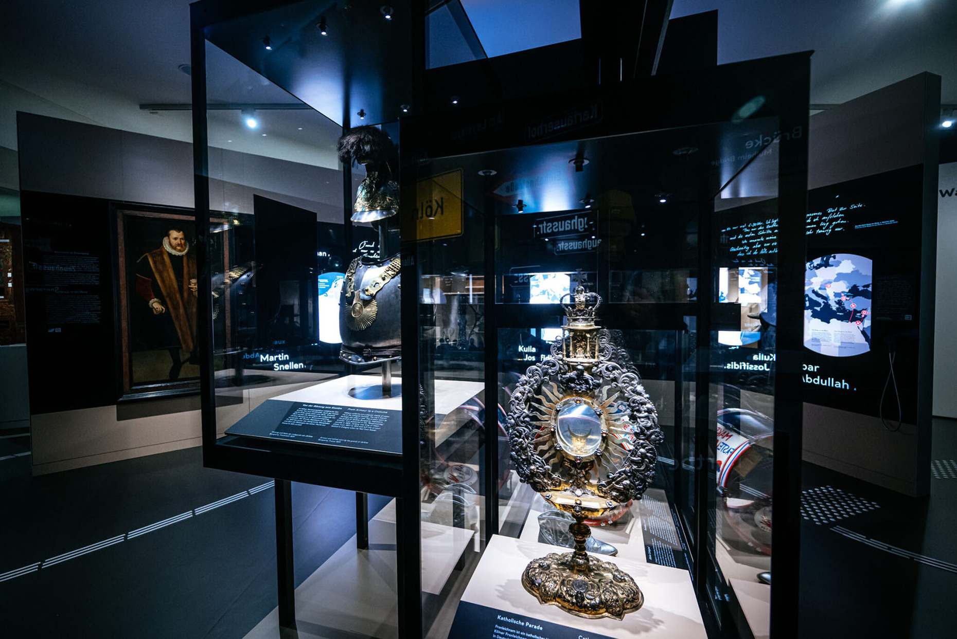 Georg Döring: Dass es wirklich sehr gut geworden ist. Ich muss auch mein Kompliment an neo.studio aussprechen, die das intelligent und modern umgesetzt haben. Im Gebäude sieht man Details, die wir gestaltet haben, wie die große Treppe, die über alle Ebenen geht, und dazwischen die Szenografie der Ausstellung. Das ergibt einen schönen Kontrast und eine gute Spannung zwischen zeitaktueller Gestaltung und diesem postmodernen Stil des Gebäudes, und ich würde sagen, das ist wirklich ein Gewinn für die Stadt Köln.