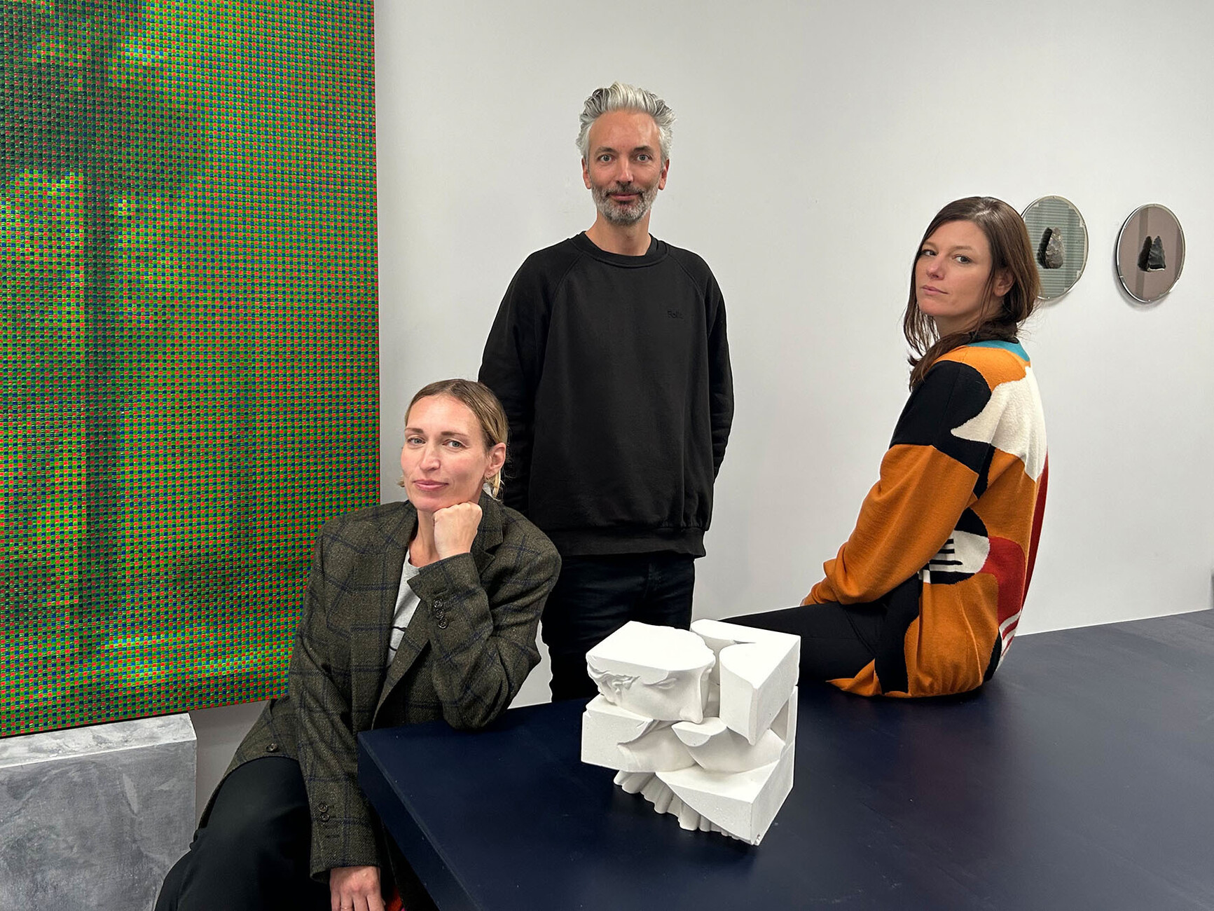 Conny Freyer: Die Skulpturengruppe im MAK ist eine Fortsetzung der Serie "Compression Loss" (2018), der eine Werkserie mit dem Titel "I woke to find myself scattered across continents" (2023) folgte. Alle befassen sich mit der Frage, wo das Virtuelle endet und das Physische beginnt und erforschen die sich ergebenden Überschneidungen. Jede Werkgruppe hat einen etwas anderen Schwerpunkt. Wir arbeiten mit Online-Datenbanken, über die Museen ihre Sammlungen weltweit öffentlich zugänglich machen und haben uns angesehen, wie digitale Daten gespeichert werden und was bei diesem Vorgang an Informationen und materiellen Qualitäten verloren geht. Wir waren fasziniert von der Vorstellung, dass man Zugang zu diesen Kunstwerken hat, die in Bits und Bytes rund um den Globus verteilt gespeichert werden. Ein Teil ist hier gespeichert, ein anderer Tausende von Kilometern weiter entfernt. Losgelöst von ihren Texturen sind die digitalen Versionen Grau, haben eine netzartige Struktur, frei von Farbvielfalt und Materialität. Sie haben quasi eine zweite Ebene, die in der digitalen Welt auf allen Servern der Welt verteilt ist. Wir fanden diese schwerelosen Fragmente von Mythologie und Geschichte, die in der digitalen Welt umherschweben, interessant.