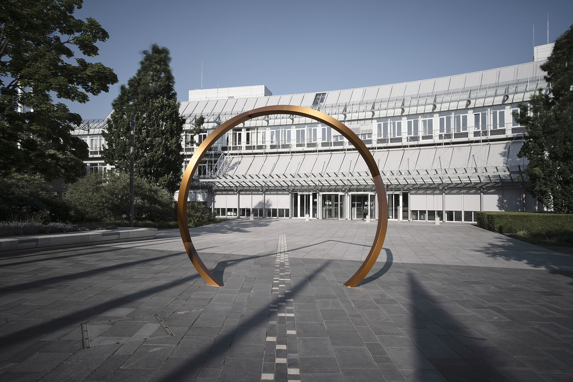 Eva Rucki: Wir interessieren uns sehr für die Geschichte von Materialien und Prozessen, weil sie für uns eine kulturelle Bedeutung haben. Oftmals verwenden wir diese Systeme, um zu sehen, ob wir eine andere Bedeutung oder Verwendung für sie finden können. Für unsere großformatige Skulptur "Squaring the Circle" beispielsweise verwendeten wir die Methode der Linearperspektive auf eine Weise, für die sie nie gedacht war. Sie ist nicht nur ein Werkzeug, sondern wurde auch genutzt, um den Dingen einen Platz im Universum zu geben, um Klarheit zu schaffen. Das Werk vereint verschiedene geometrische Formen, die von zwei gegensätzlichen Blickwinkeln sichtbar werden und wirkt je nach Blickrichtung wie ein Kreis oder ein Quadrat. Inspiriert von dem alltäglichen Phänomen, dass Menschen über dieselbe Sache reden, aber von dieser eine völlig andere Vorstellung haben vereint die Arbeit unterschiedliche Perspektiven in einem Ganzen.