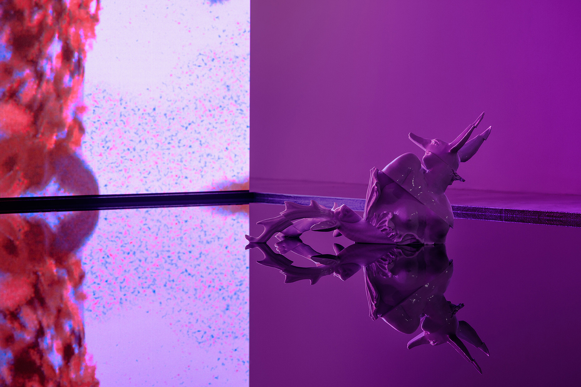 Eva Rucki: Für unsere Skulpturen kombinieren wir Fragmente unterschiedlicher Figuren in Anlehnung an die Art und Weise in der die verschiedenen Datenpakete, die die Originalskulpturen ausmachen, auf unterschiedlichen Servern in verschieden Ecken der Welt gespeichert sind. Diese Tatsache hat unter anderem auch den Title unserer Werkgruppe "I woke to find myself scattered across continents" inspiriert. Diese kombinierten Fragmente bringen wir dann als eine Art dreidimensionale Kollage in die tatsächliche Welt zurück. Für die Skulpturengruppe "Grenzgänger", die im MAK als Teil der Installation "Terminal Beach" zusehen ist, haben wir uns besonders auf Figuren aus der Mythologie, der Folklore und der Geschichte konzentriert, denen die Fähigkeit zugeschrieben wird, Grenzen im weitesten Sinne zu überschreiten, sei es zwischen dem Wachsein und dem Übergang in eine Traumwelt, Leben und Tod, Mensch und Tier, Mensch und Pflanze, Himmel und Unterwelt. Sie sind eine faszinierende Sorte historischer und volkstümlicher Figuren, die in verschiedenen Bereichen und in unterschiedlichen Inkarnationen leben können. Wir waren an dieser Art von Wesen interessiert als eine Art von Metapher dafür, dass wir in einer gewissen Weise alle selbst Grenzgänger sind, die sowohl in der physischen als auch in der virtuellen Welt leben.