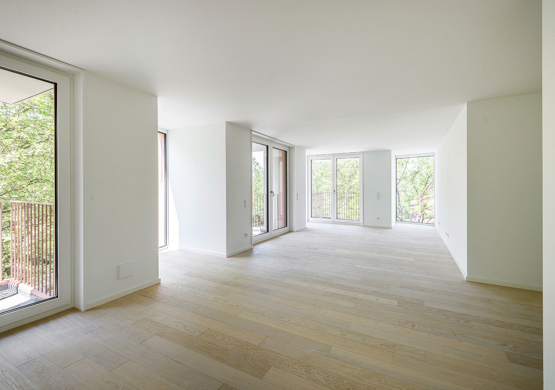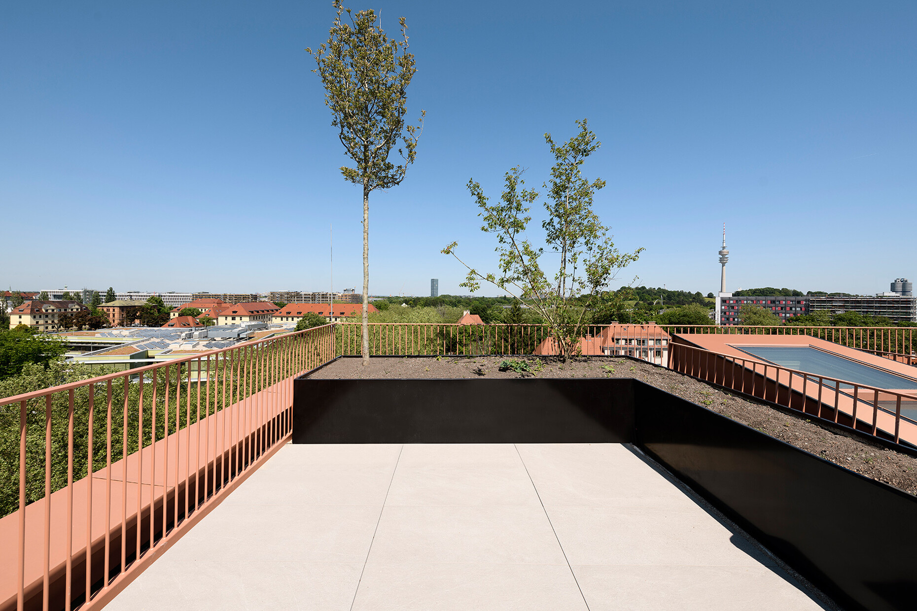 Wenn man sich dem Bauzaun nähert, fällt einem erst mal das expressive Äußere auf, das der Bauherr folgendermaßen beschreibt: "Die außergewöhnliche Fassade des Gebäudes wirkt dynamisch und entwickelt dadurch eine besondere Strahlkraft für die gesamte Umgebung. Asymmetrische Vorsprünge, raumhohe Fensterflächen und Balkone verleihen ihr Lebendigkeit." Die ist tatsächlich nötig, denn die Nachbarschaft besteht unter anderem aus Amtsgericht, Bundespolizeidirektion, Hochschulgebäuden und einem Betriebsgelände der Stadtwerke inklusive Heizwerk. Allerdings dockt am südöstlichen Ende des Van B ein im Bau befindliches Mehrfamilienhaus von Fink+Jocher an. Direkt daneben befindet sich ein gerade fertiggestelltes Wohngebäude von Goetz Castorph Architekten mit Werkswohnungen für die Münchner Stadtwerke. Und schräg gegenüber ist vor kurzem eine Grundschule von Behnisch Architekten eingeweiht worden. Auf der Nordwestseite gegenüber des Van B dann die zu Beginn des 20. Jahrhunderts errichtete Barbarasiedlung. Deren putzige Walmdachhäuschen mit Vorgärtchen bilden den größtmöglichen Kontrast zu Van Berkels dekorativem Betonstrukturalismus – und zum ersten Mal bekommt man eine Ahnung vom "Very Urban Living", als bei der Führung von der Heterogenität der Umgebung geschwärmt wird.