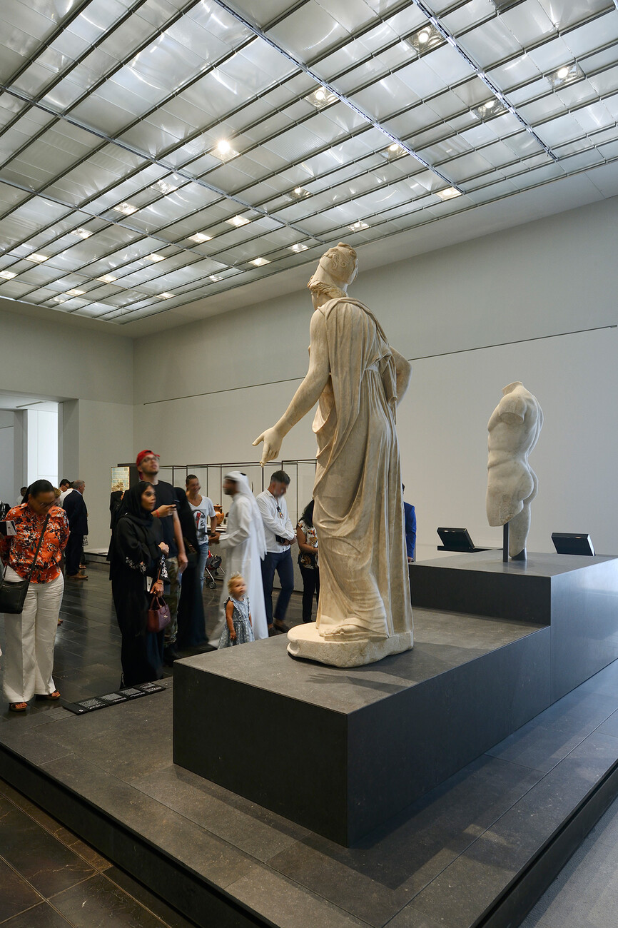 Since “Cata” is an open platform it is capable of illuminating exhibition items of widely varying sizes and materials. Every projector consists of a silicon lens as a so-called primary unit. The latter’s beam width can be expanded by using holographic filters as dockable secondary units. “It might look like a very simple idea but developing a product with such diverse uses is by no means easy,” says Carlotta de Bevilacqua by way of emphasizing the research work involved in producing “Cata TIR”. In visual terms by contrast the delicate and partly transparent projector is very low key and makes the light the main protagonist. This is also the case in Louvre Abu Dhabi, where the projectors fit quite naturally into the ceiling construction so that visitors’ attention can focus entirely on the works of art and architecture. (fap)