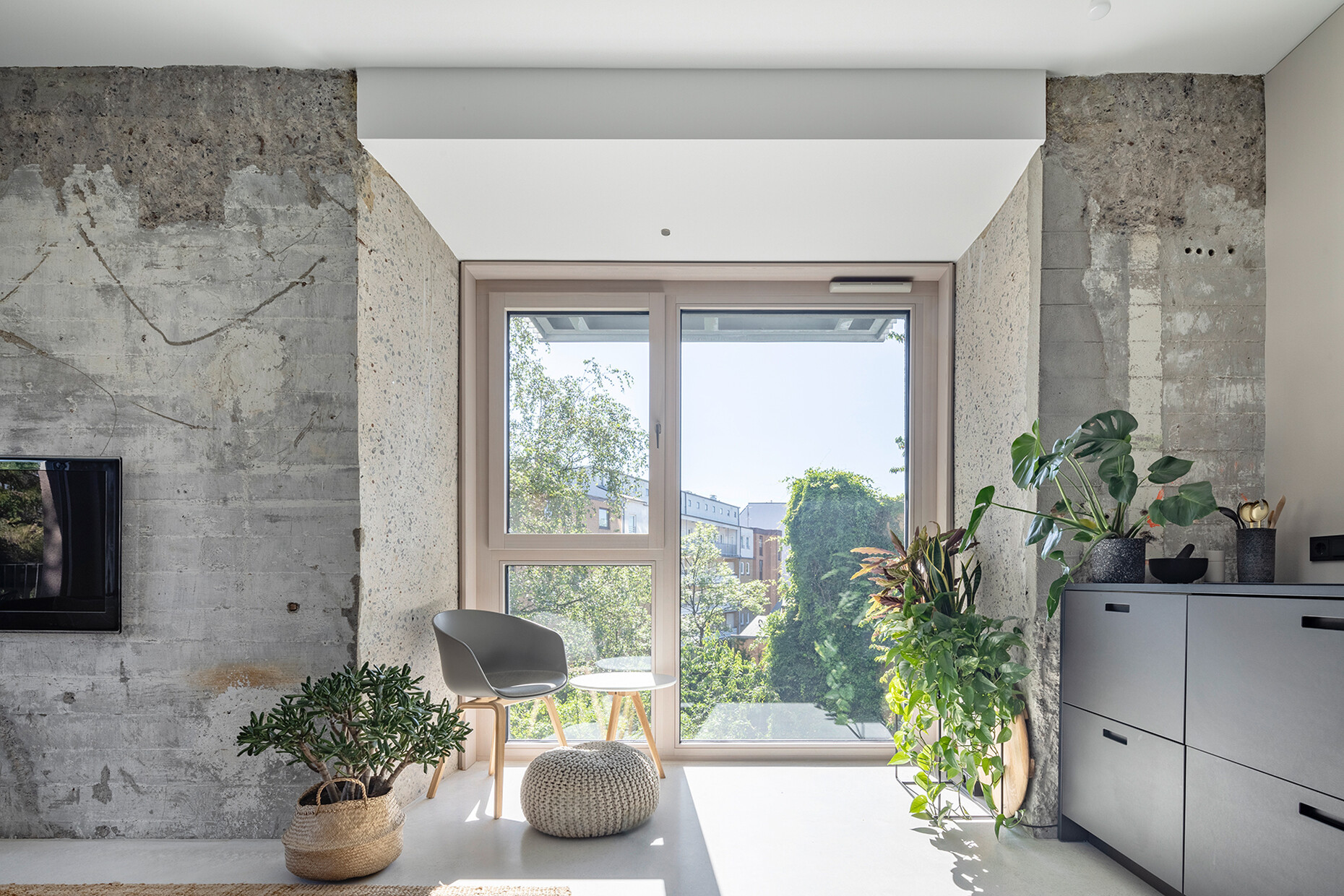 Part of the original façade, walls and ceilings have been left in exposed concrete. At the same time, you give the residents a lot of freedom in terms of the use of space and the furnishings – the flats could be combined or units separated if necessary. Why did you decide to leave part of the further design in the hands of the users?