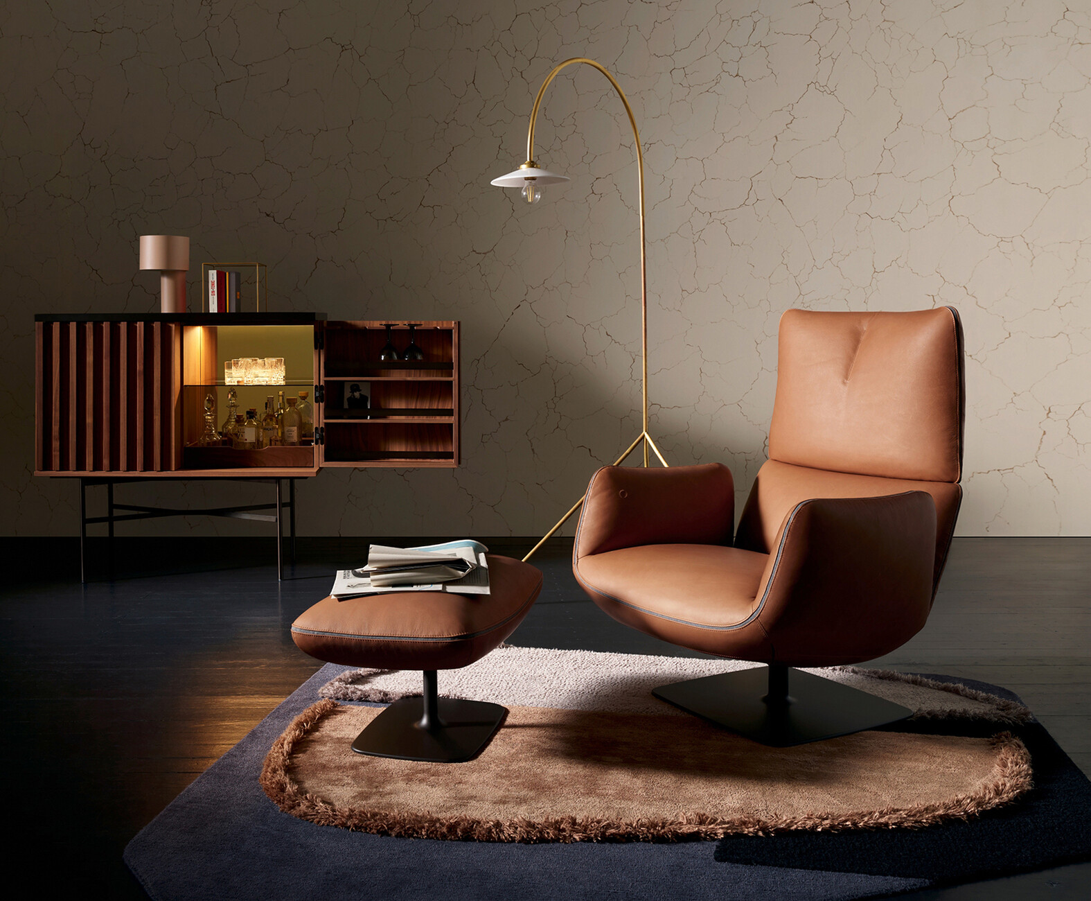 "We always follow an idea and are faithful to it for a long time, developing it further. For us, the product has to tell a story," say the designer duo jehs+lab about their design of the "Jalis Lounge" armchair for COR. With this relaxed new addition, Markus Jehs and Jürgen Laub are expanding the successful "Jalis" collection with a modern recliner that effortlessly combines elegance and comfort. A folded seat cushion served the designers as inspiration for the firm upholstery and visually accentuated contours. The release mechanism of the version with tilt mechanism also contributes to the harmonious overall appearance: Instead of being in the usual form of a clunky lever, it is completely hidden in the armrest and is only marked as a tone-on-tone embroidered circle. For extra comfort, the headrest can also be tilted by 20 degrees, providing additional support for the seated person. Those who wish can relax their feet in parallel on the matching stool. "Jalis Lounge" is available in all the fabrics and leathers in the COR collection. The V-shape of the backrest upholstery, however, is accentuated by fine embroidery. There is a range of four colours to choose from for the contour band that decorates the rim. In addition, the base can be lacquered as a fixed wire frame or rotating plate base with tilting mechanism in many colours. (am)