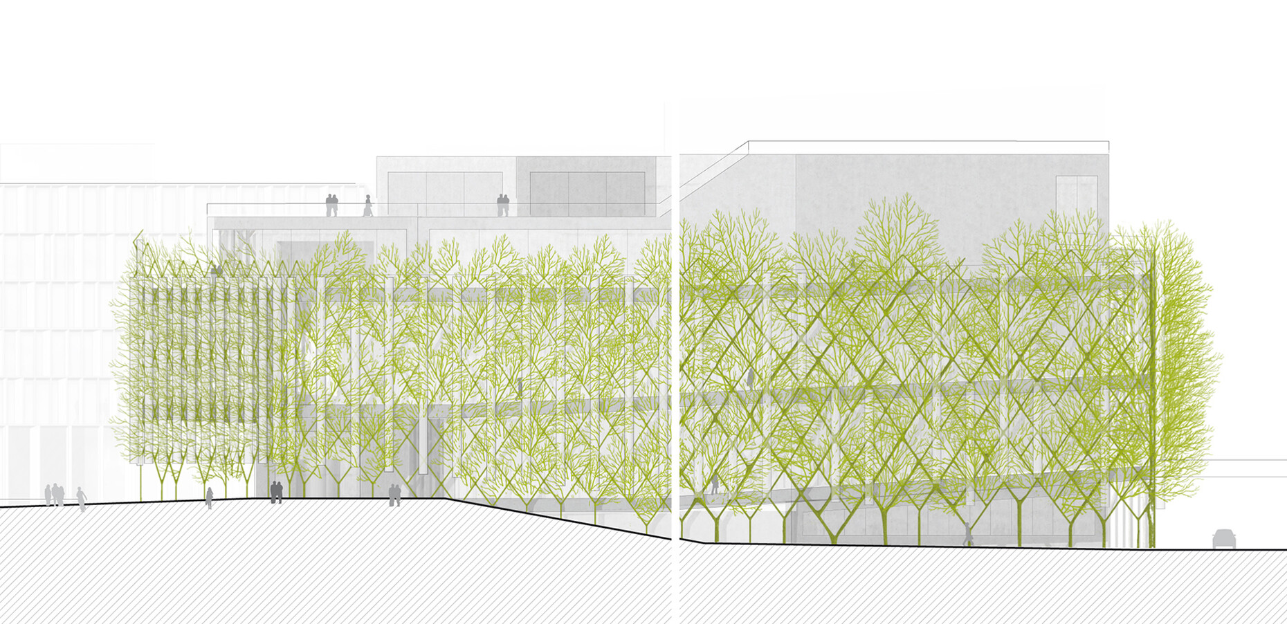 Prof. Ferdinand Ludwig: If we imagine a classic building for a moment, then we have a large built volume that heats up during the day owing to solar irradiation and absorbs a lot of thermal energy in the process. This is released with a time lag into the outer world and into the interior. The heat-island effect cannot be solved by technical means, as an air-conditioner simply releases even more heat into the environment. Shading elements may help cool the interior, but increasingly reflect the heat outwards. All that can help here are plants, because these not only provide shade but also, through tranbspiration, have a cool outer surface. In other words, the energy returns into the atmosphere through transpiration. With trees, I can achieve very differentiated shading because, unlike with classic greening of buildings that relies on two-dimensional trellises, I have the three-dimensional qualities of horizontally layered branches. And if I imagine them in front of a building, then as an inhabitant I am in the space of the tree’s canopy and at the same time protected from outside eyes and the heat. That is added ecological value, added health value, and added aesthetic value – because we believe that we are creating a natural space in the heart of the city that has so far not been considered in its architectural designs.