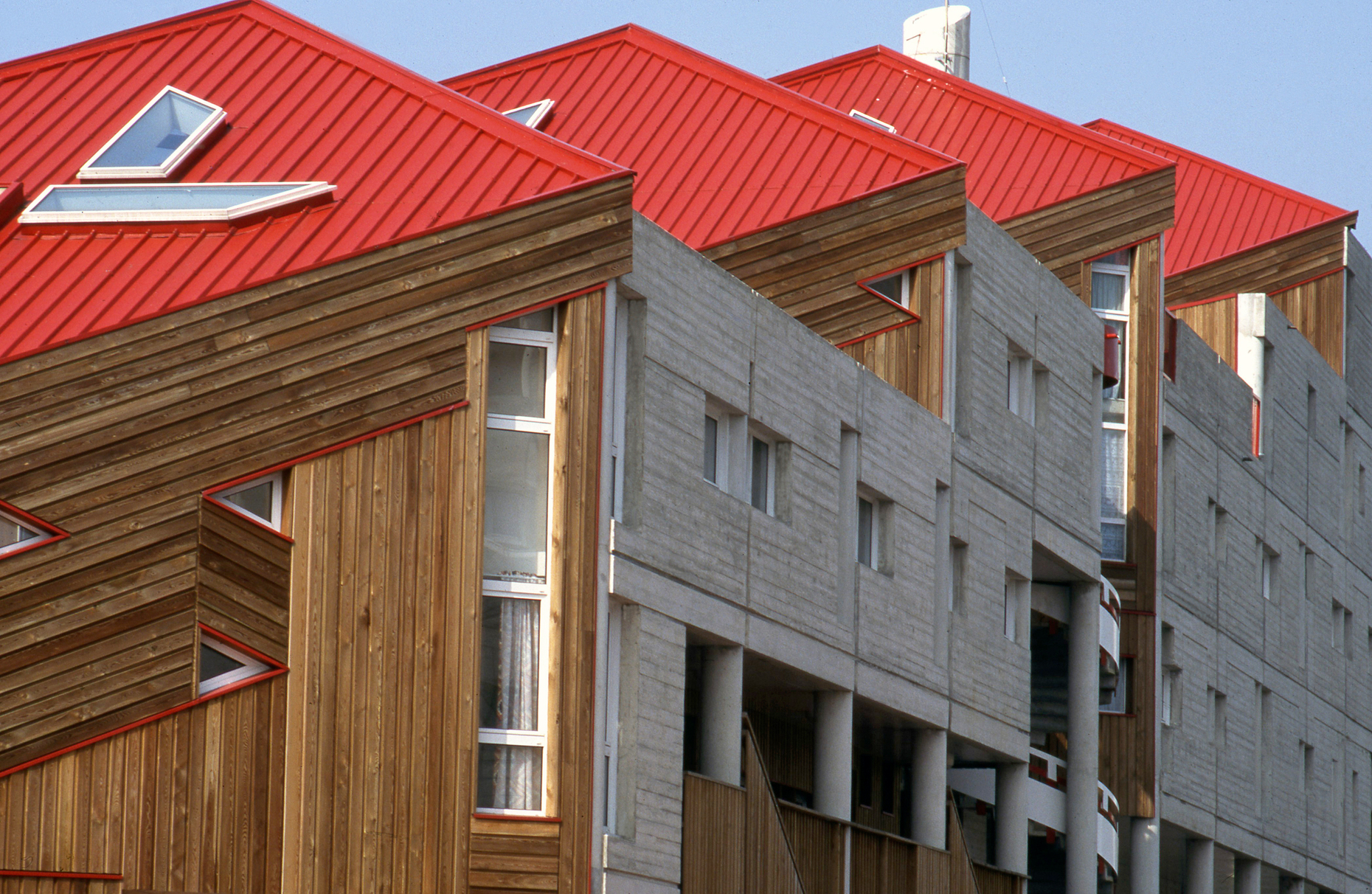 Looking at the many social housing projects in your portfolio, I would be interested in what you see as common features. It looks to me that you are repeatedly using elements like arches and blunt angles, and your preferred materials obviously are wood and fair-faced concrete. What are your main interests in your architecture, what do you try to achieve?
