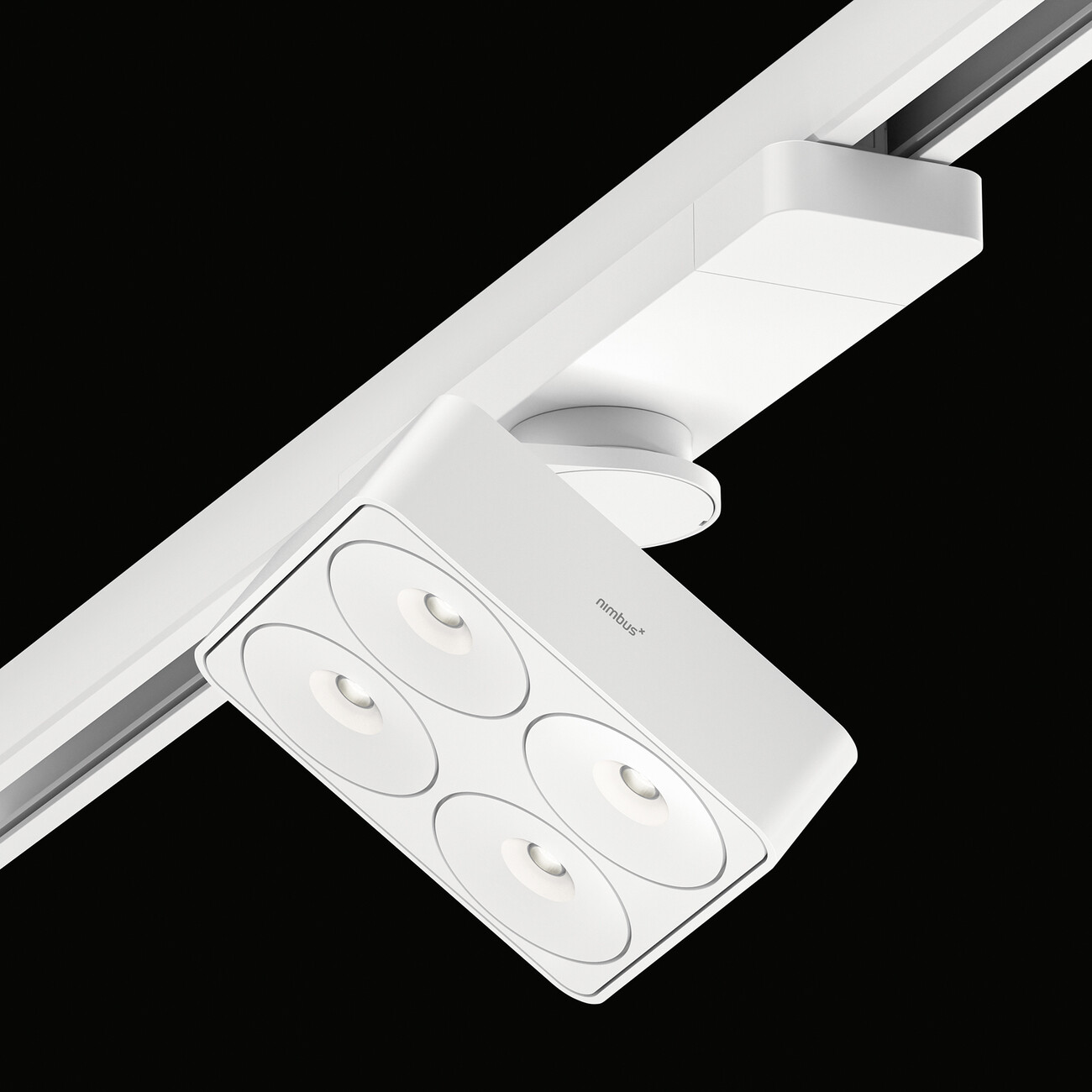 Subtle design in black or white combined with brilliant, focused light: Those are the ingredients Nimbus has used to fashion the “Q Four” family of luminaires. Now the existing two models, the “Q One” and “Q Four”, are being joined by three new options: “Q Four TT”, “Q Four IN” and “Q Four TT Track”. The result is a modular lighting system that provides something fitting for every setting and situation: “Q Four TT” adds dynamism to a room: As it is both rotatable and tiltable the spotlight can be used equally to highlight spaces or individual objects. By contrast, “Q Four IN” can be flush-mounted on the ceiling to create a source of light that is virtually invisible. Unless that is you opt for the version in black; then the sleek, square element of “Q Four IN” forms an interesting contrast, say with a white ceiling. “Q Four TT Track” is the most flexible version in the family: Affixed to a conductor track the light can be repositioned anywhere in the room as and when you want.