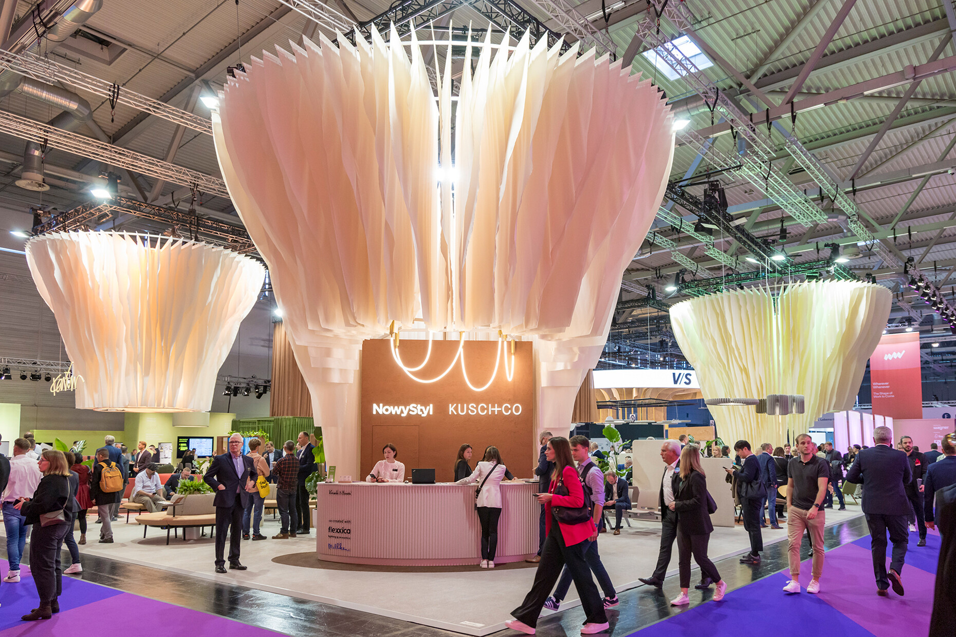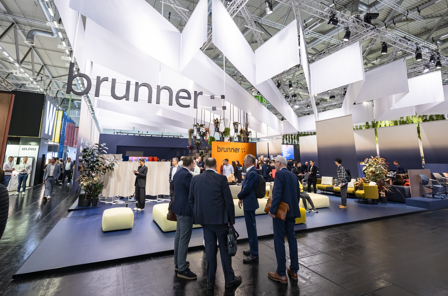 Walking through the halls of Koelnmesse, you could tell: Whatever is to come, the furniture industry is prepared. With modular structures and flexible elements, customised solutions and holistic approaches. At the desk and on armchairs, we sit protected behind high backrests and partitions, upholstered, of course. On the floor-level sofas, which meander through the room as required, we choose from a wide range of cushions that feature asymmetrical shapes instead of classic squares. We contrast the growing uncertainty with strong, natural colours that appear warm and familiar with a large dose of optimism that stability is not yet lost – as with Lindner, ege & Ambright, Prostoria, Arper or COR. A touch of violet and light lilac was added to this original choice of colour, which could indicate a desire for spiritual foresight and healing, if you believe the esotericism here. The homely office dominated the presentations, technical details are now preferably hidden away or designed as discreet jewellery, such as the minimalist ‘System 25’ by ZETR in cooperation with e15. The former gimmicks for open spaces of recent years have gained in elegance in parallel – movement yes, after all, studies show that both long periods of sitting and standing are unhealthy, but then please do it with style.