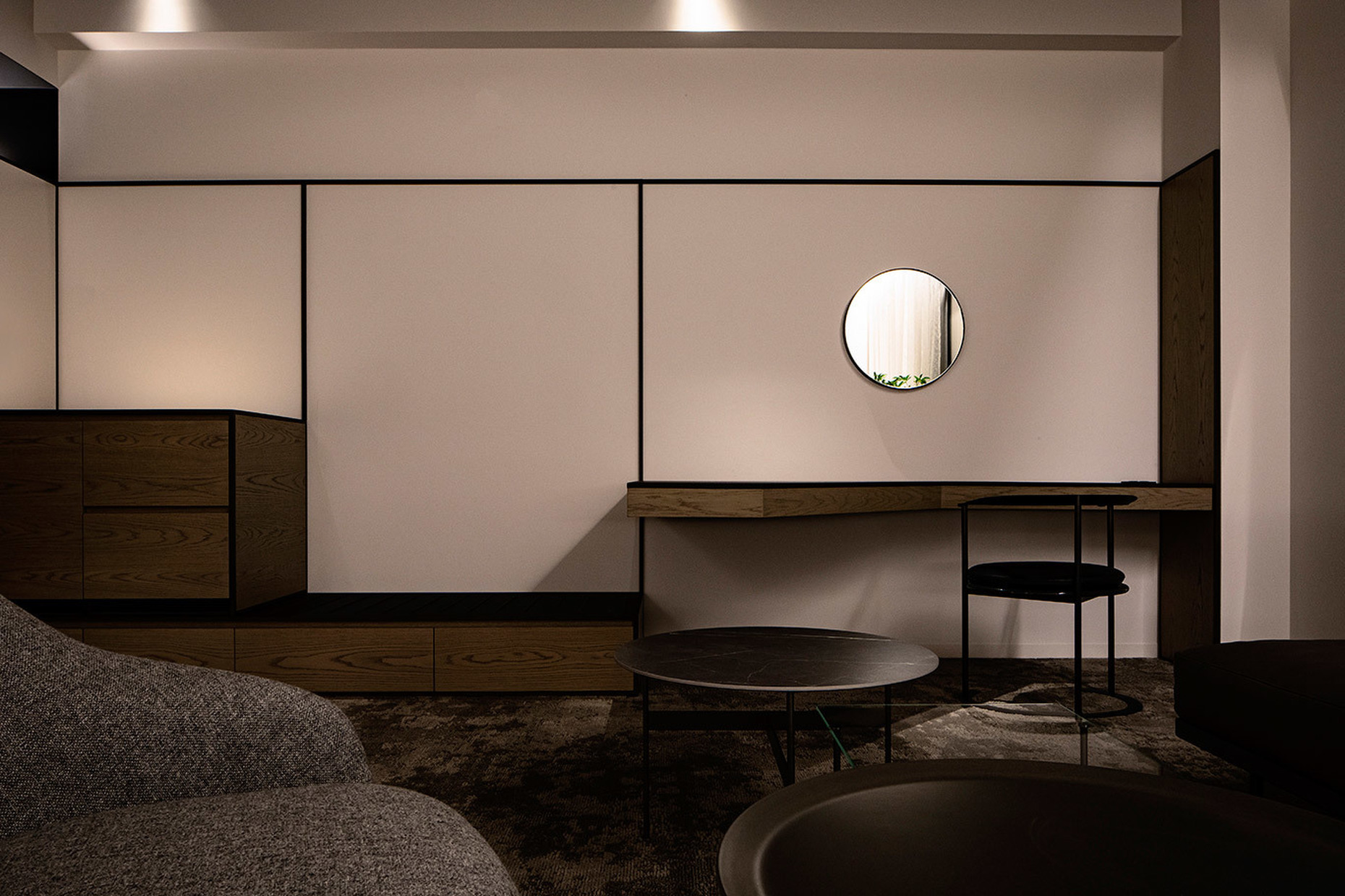 Unlike the situation with Kisho Kurokawa’s “Nakagin Capsule Tower”, in which one residential pod is just like the next one, in the Shiroiya Hotel all 25 rooms are different in size and design. The existing building, which once had 75 hotel rooms on offer, was pretty much gutted and reduced to 17 units. The architects and designers invited to take part were given carte blanche for four hotel rooms: Michele de Lucchi, Jasper Morrison, Leandro Erlich, and Sou Fujimoto were each commissioned to design one room completely as they wanted it. The result is four one-off examples of interior design. Accordingly, British designer Jasper Morrison transformed his room into a wooden crate from floor to ceiling and all the surfaces are clad in wooden paneling. When the guests close the shutters on the windows, they get the feeling that they are standing in a giant export crate for transporting works of art. According to Morrison, he wants the traveler himself to become the room’s “precious contents”. His Italian colleague Michele de Lucchi has also chosen wood as his basic material. His “2725 Elements Room” manifests just as many pieces of dark clapboard, the overall impression of which manages to bridge the gap between sculpture and interior design. For his part, Argentine concept artist Leandro Erlich works with a detailed structure consisting of intertwined metal pipes. Erlich describes his installation as a “dynamic excavation that highlights the power of empty space and air”. With his reference to Italo Calvino’s invisible cities, his aim is to render visible those elements of a building which otherwise remains unseen. His “Lighting Pipes”, illuminated pipe structures, have also been used to adorn the atrium in the lobby.