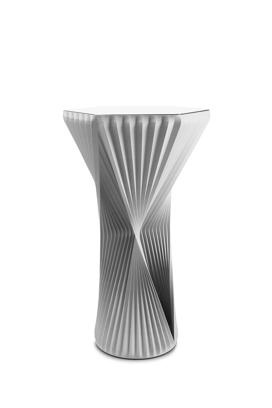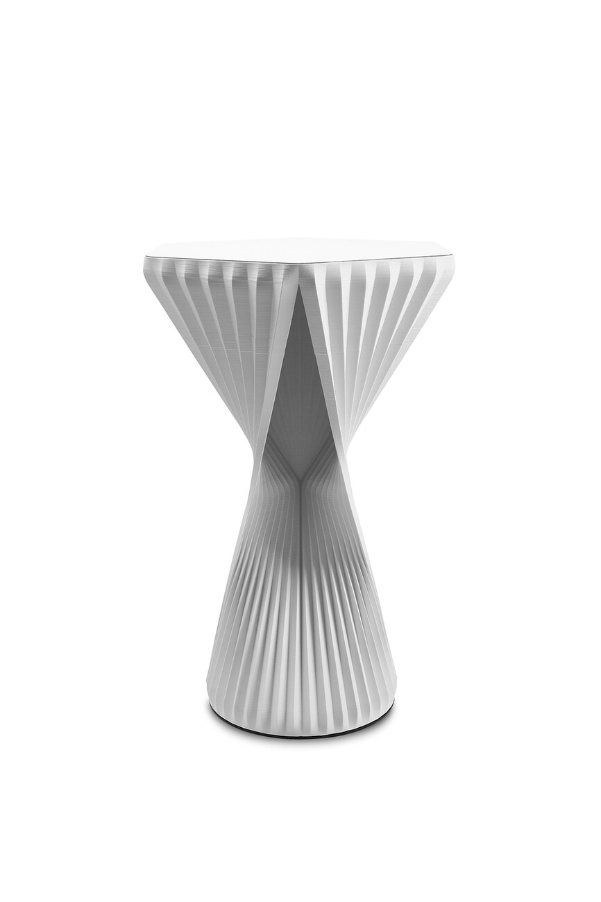 Hadi Teherani: The tables will be produced in three different heights so that they match the versions of the stools, for example as high tables. We also offer material combinations such as glass and Fenix chrome, as the design leaves plenty of scope in terms of material and colour. The integration of light is also planned. Producing the large tables in 3D printing was a particular challenge.