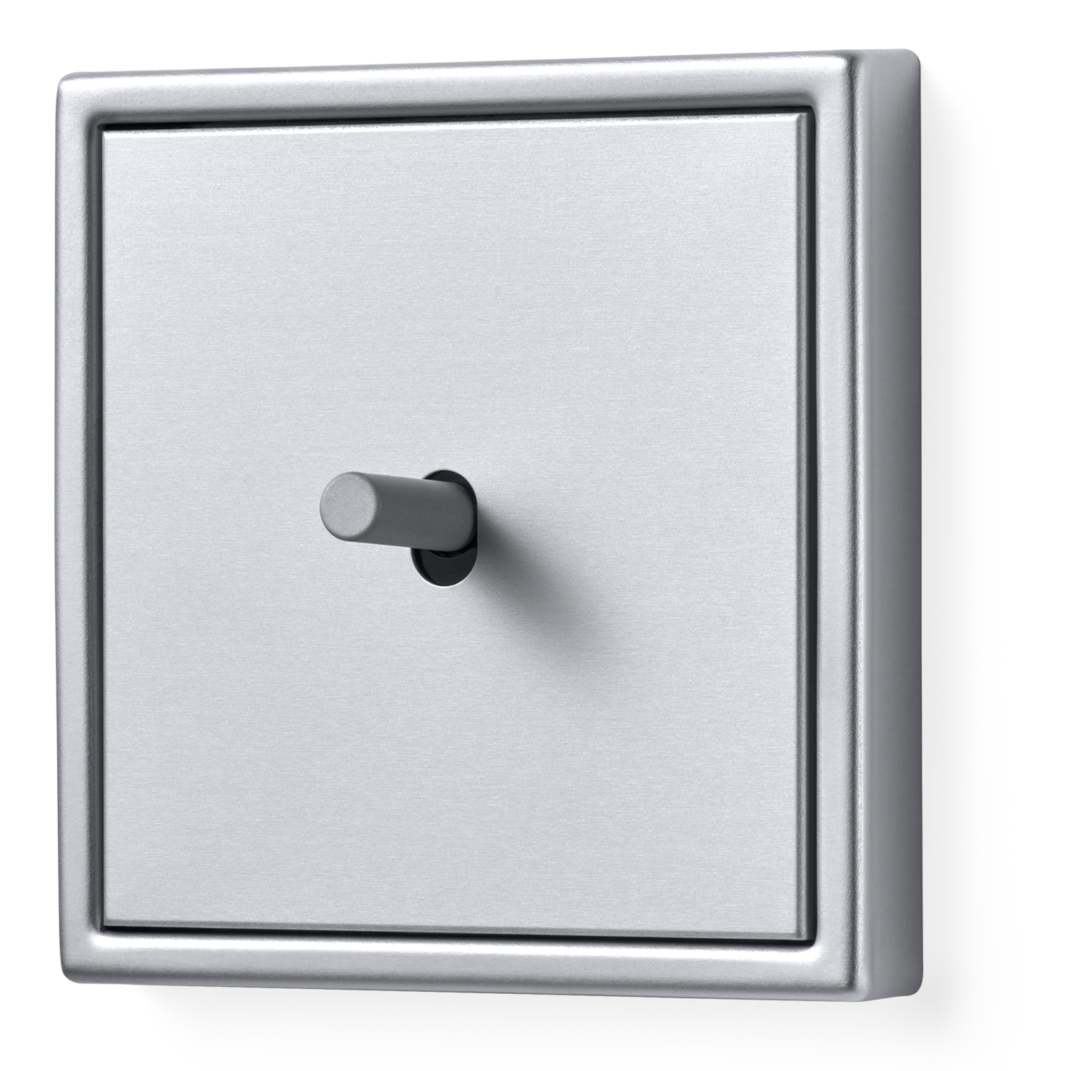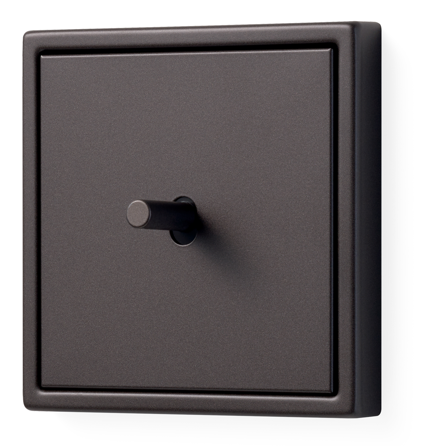 LS 1912 mit kegelförmigem Kipphebel ist ebenfalls in Messing Classic und Dark sowie aus Edelstahl und Aluminium erhältlich. Die Edelstahl-Schalter sind glaskugelgestrahlt, die Ausführungen aus Aluminium matt gebeizt. LS 1912 in Dark basiert auf Aluminium und ist in einem edlen, dunklen Braunton lackiert.