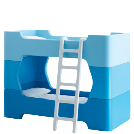 Bett – Etagenbett Material: Polyäthylen, hergestellt im Rotationsverfahren. Matratze, Spannüberzug für Matratze, Kissen, Kissenbezug und Set von Bettlacken separat erhältich. Das Magis Me Too Logo ist auf alle Produkte unserer Kollektion geprägt und garantiert ihre Echtheit.