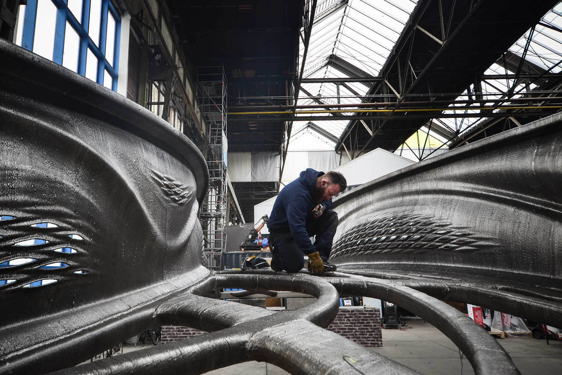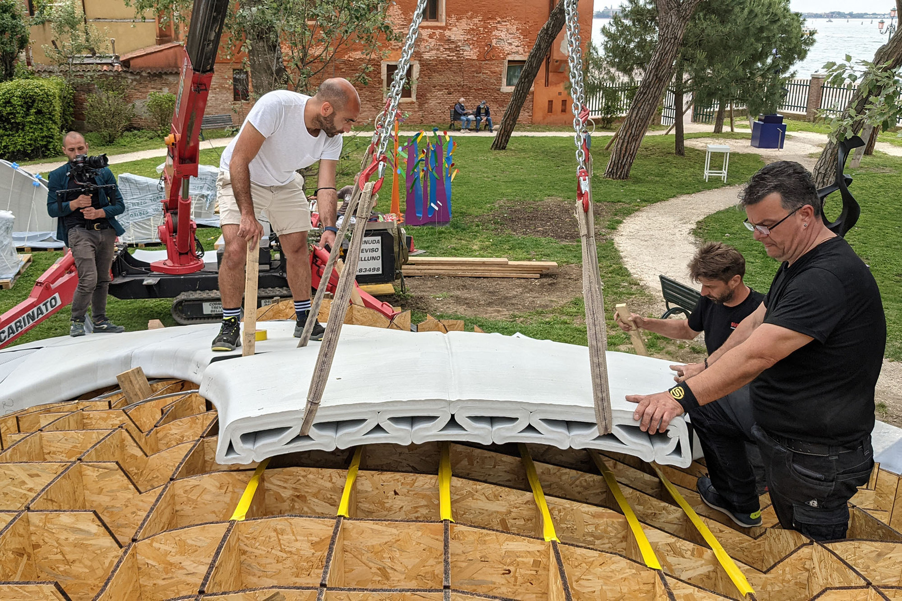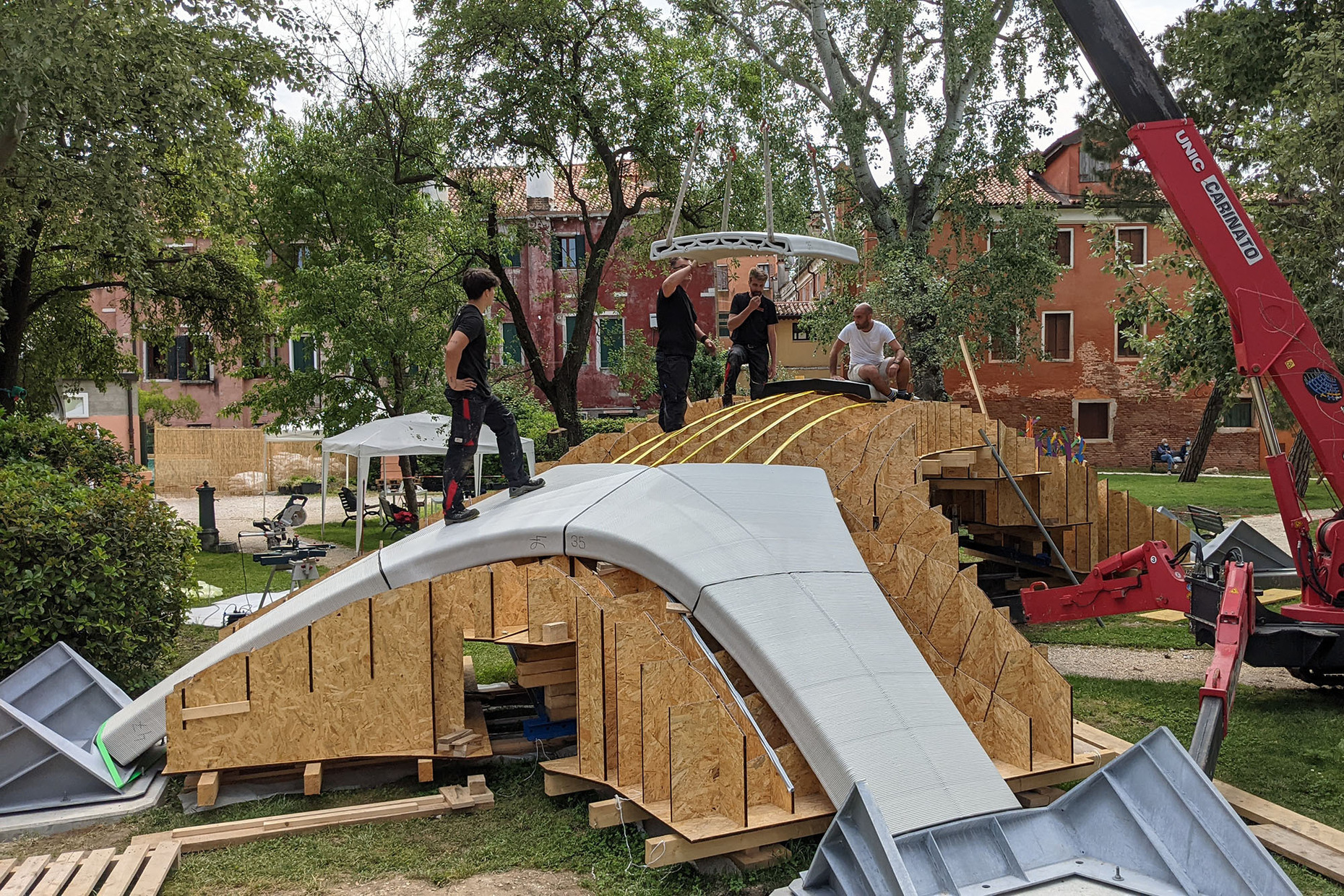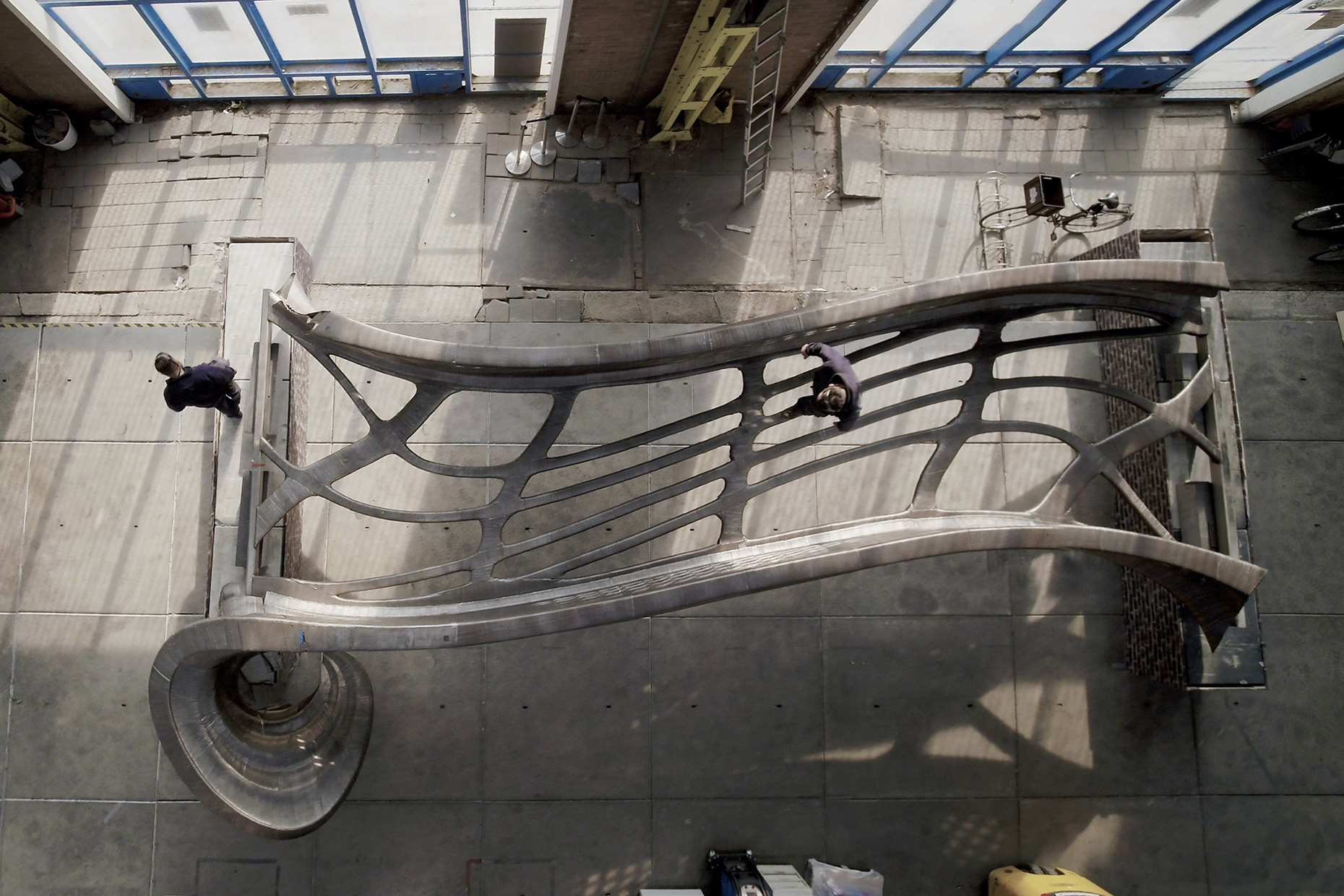 Und so könnten die Möglichkeiten des 3D-Drucks zu einem neuen architektonischen Vokabular führen, das besonders für die großen Formschaffenden unter den Architekten interessant sein dürfte. Deshalb überrascht es nicht, dass Zaha Hadid Architects gerade eine unbewehrte Brücke fertig gestellt haben, die in Zusammenarbeit mit der Block Research Group (BRG) der ETH Zürich entwickelt wurde. Das für die diesjährige Architekturbiennale errichtete Bauwerk setzt sich aus 3D-gedruckten keilförmigen Beton-Hohlblöcken zusammen, die nur durch die Schwerkraft zusammengehalten werden. Sie bilden eine Art Gewölbe aus, dass die Last auf die Fundamente verteilt und sich an den statischen Prinzipien der gotischen Kathedralen orientiert. Die Brücke ist im Übrigen – und das sei hier der Vollständigkeit halber noch erwähnt – die "erste in 3D gedruckte Bogenbrücke ihrer Art".