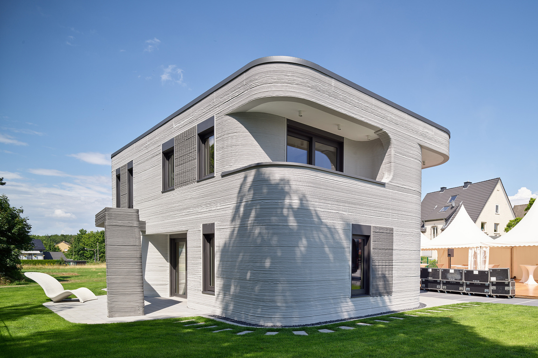 Es ist ein bisschen wie der Wettlauf zum Mond: Rund um den Globus gibt es momentan Architekturprojekte, die mit Titeln wie "Erstes kommerzielles Wohnprojekt auf Basis von 3D-Betondruck" (Eindhoven) oder "Erstes deutsches Wohnhaus aus dem 3D-Drucker" (Beckum) beworben werden. Der 3D-Druck und die damit einhergehende Digitalisierung der Baubranche scheinen tatsächlich an Fahrt aufzunehmen – und jeder will mit irgendeinem Superlativ dabei sein. Wurde auch Zeit, könnte man sich da denken. Schließlich ist die Bauindustrie trotz einer unüberschaubaren Anzahl an Produkten alles andere als innovationsfreudig, weshalb heute wie vor tausenden Jahren der Ziegel ganz brav übereinandergeschichtet wird. Zuletzt waren es Glas und Beton, die als Baustoffe der Moderne im 20. Jahrhundert Licht, Luft und gestalterischen Spielraum in die Architektur bringen sollten. Mittlerweile sind wir im 21. Jahrhundert angekommen und nun ist es der 3D-Druck, der einen ersten Ausblick auf eine neue Art des Bauens geben könnte.