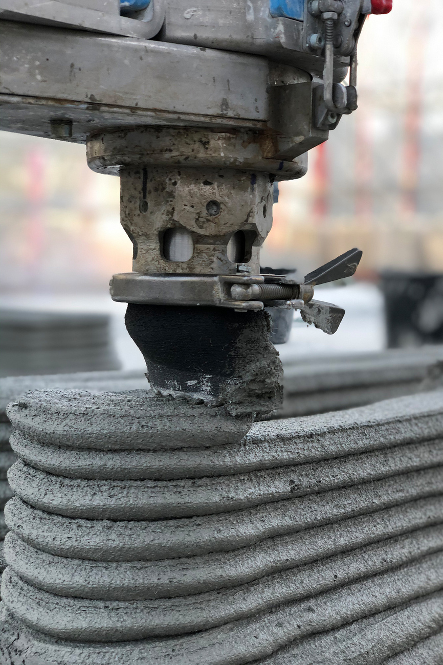 Der Prozess spart Zeit, BauarbeiterInnen und Material, womit man beim kostengünstigen Bauen wäre, was im Übrigen auch ein Versprechen des alten Betons im 20. Jahrhundert war. Deshalb verwundert es nicht, dass sich die Wirtschaft des Themas angenommen hat. Ein Beispiel wäre die Firma ICON, die von einer Gruppe an Investoren – unter anderem dem dänischen Architekturbüro BIG – getragen wird. Zum Portfolio des amerikanischen Unternehmens zählen etwa zwei circa 46 Quadratmeter große Häuser im mexikanischen Tabasco, die als Modellvorhaben bezahlbaren Wohnraum schaffen sollen. In Russland und China ist man ebenfalls schon fleißig am Drucken: 2017 konnte das Startup "Apis Cor" aus Moskau ein 38 Quadratmeter großes Haus innerhalb von 24 Stunden aus einem Stück aufschichten, während die chinesische Firma "Winsun" bereits 2014 zehn Häuser aus einzeln gedruckten Wandelementen im gleichen Zeitraum zusammenmontierte. Mit dem dort verwendeten Gemisch aus Fiberglas, Zement und recyceltem Bauschutt ist dank letzterer Zutat auch etwas für den ökologischen Fußabdruck dabei. Trotzdem ist das Drucken mit dem Werkstoff alles andere als nachhaltig, da Beton nun mal Beton bleibt, egal ob er aus dem Drucker oder aus der Schalung kommt.