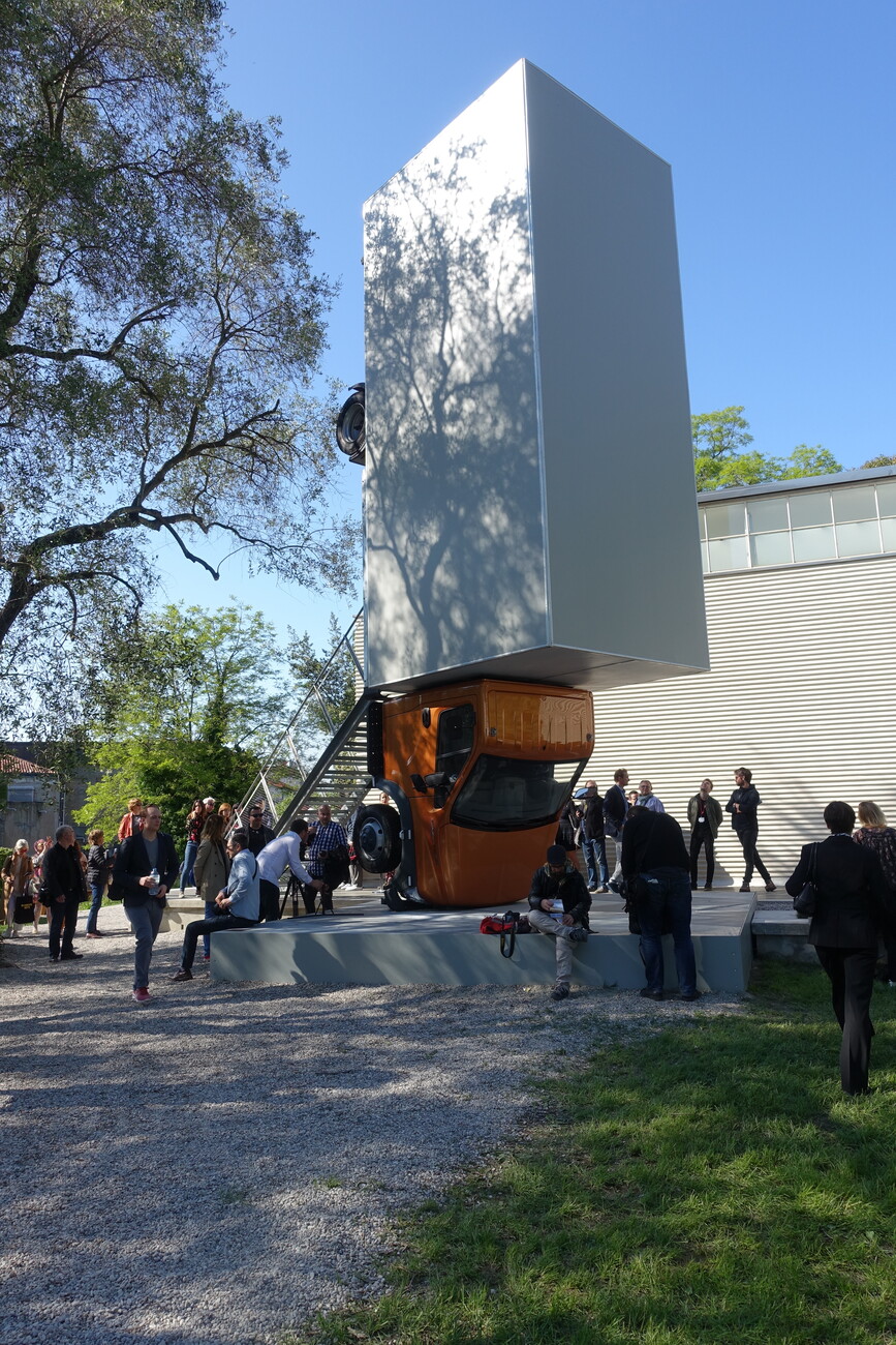 Vor dem Pavillon hat Wurm einen Kleinlaster hochkant gestellt und in eine Aussichtsplattform verwandelt. Ist man durch den Laderaum gestiegen und oben angekommen, erwartet einen die Anweisung: "Stillstehen und über das Mittelmeer schauen". Genau genommen sieht man nur die Lagune, der Satz taugt aber durchaus als Motto für vieles, was noch bis November in Venedig als aktuelle Kunst vorgeführt wird. Dabei erweist sich – wie üblich zerfällt die Kunst-Biennale auch diesmal in die von diversen Kuratoren und Kuratorinnen, Künstlern und Künstlerinnen bespielten Nationenpavillons in den Giardini und in der Stadt und in die zentrale Ausstellung in den Arsenalen und im Padiglione Centrale – die Schau "Viva Arte Viva" als das größere Problem. Allzu lebendig präsentiert sich die aktuelle Kunst darin nicht.