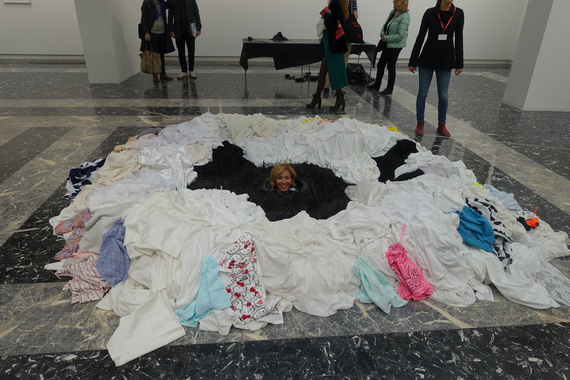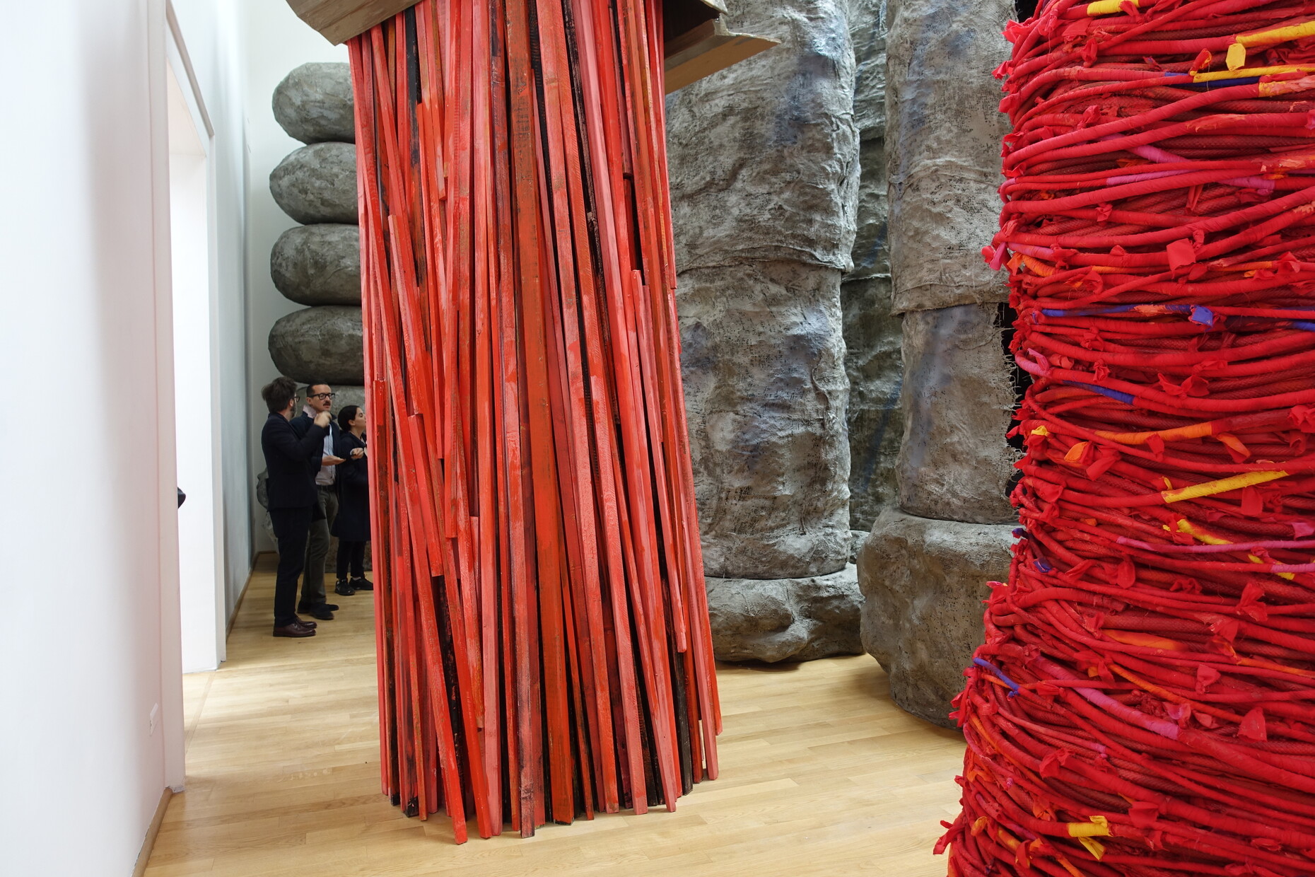 Das Paradoxe ist: Auch in Venedig behaupten viele Künstler, was sie zeigen, sei politisch, widerständig und reflektiere aktuelle Machtverhältnisse. Schaut man genauer hin, wird das nur abstrakt behauptet, findet aber selten zu einer Form, die es zuallererst gültig, anrührend, wahrhaftig macht und sich von einem bebilderten journalistischem Hinweis auf ein vorgeblich wichtiges Thema unterscheidet. Zu oft wird moralisiert und auf simple ästhetische Effekte vertraut. Gute Absichten werden nur illustriert. Sich an den Händen zu fassen und auf Mythen und Schamanen zu vertrauen, revitalisiert weder irgendeinen Ursprung noch taugt Wollenes, Besticktes und Getöpfertes per se als Elixier einer zeitgenössischen Form von Widerstand.