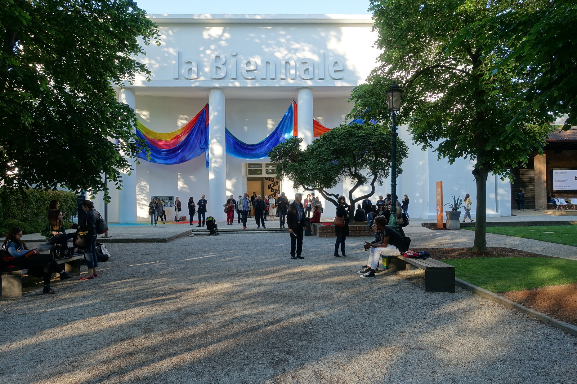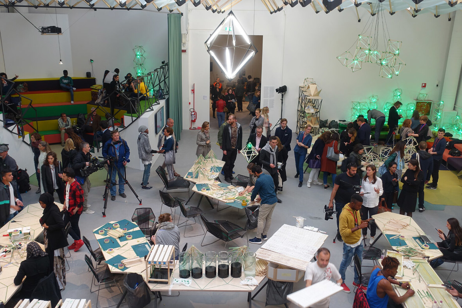 Und was macht Christine Macel, die für die zentrale Ausstellung verantwortlich ist, in der auch diese Werke gezeigt werden? Statt eine Spannung zwischen solchen und ganz anders gearteten Arbeiten aufzubauen und der Frage nachzugehen, was sich gesellschaftlich, medial, künstlerisch in den letzten Jahren verändert hat, sortiert sie die Kunst nach Begriffen in Abteilungen ein, die sie ebenfalls Pavillons nennt und degradiert sie damit zu Illustrationen und Belegstücken ihres gelinde gesagt zweifelhaften Kunstverständnisses. Den Auftakt macht der "Pavillon of Artists and Books", in dem Ólafur Elíasson die Besucher einlädt, gemeinsam mit Flüchtlingen und Asylbewerbern von ihm gestaltete Lampen zusammenzubauen, deren Verkaufserlös an die Caritas gehen soll. Bezahlt werden die Flüchtlinge nicht, dafür gibt es kostenlose Sprachkurse. Vielleicht lernen sie als Arbeiter für einen weltweit agierenden Großkünstler auch, wie die Hierarchien in der Kunst verteilt sind und wie das Gutgemeinte ins zynisch Ausbeuterische umkippt.