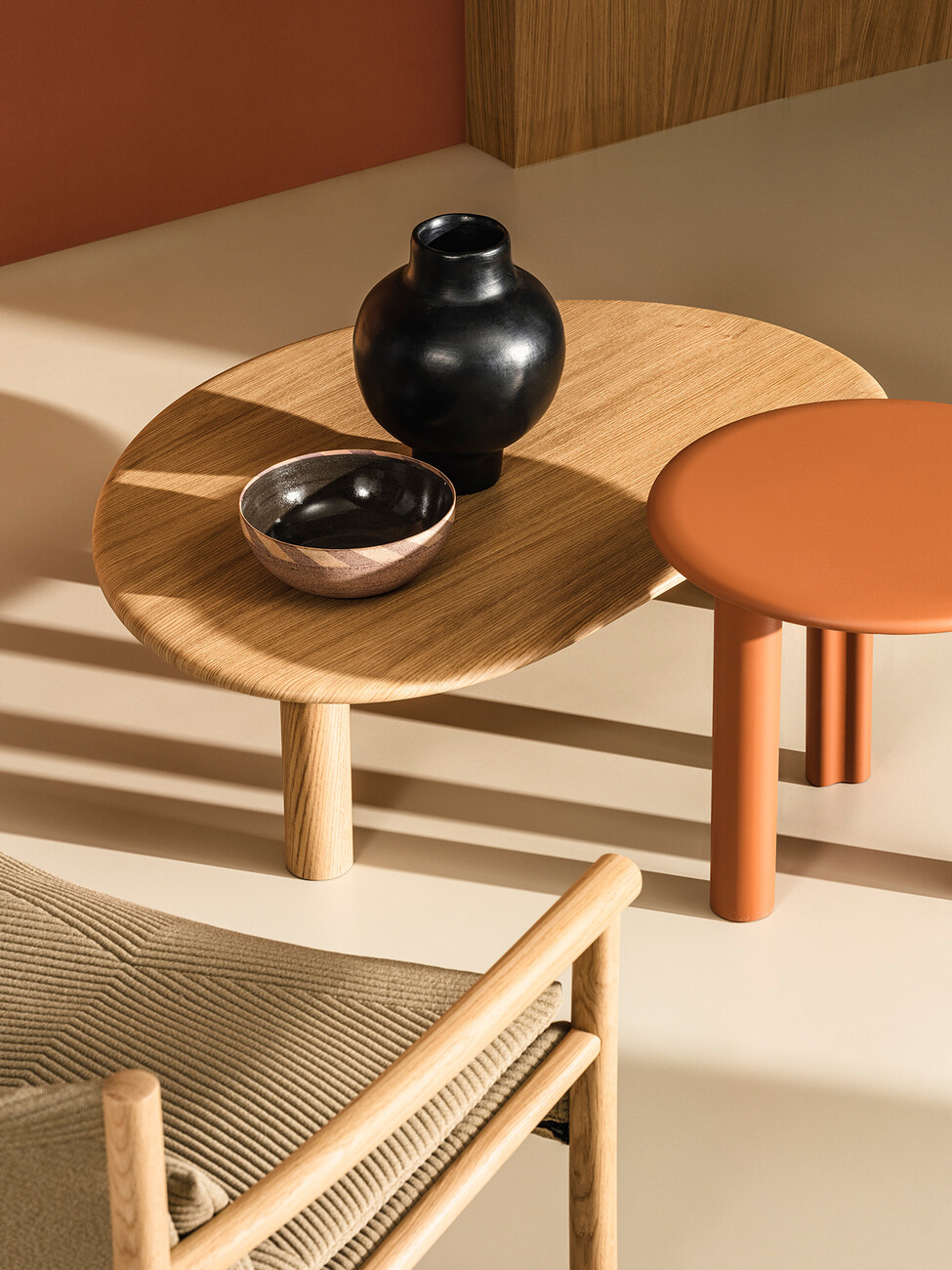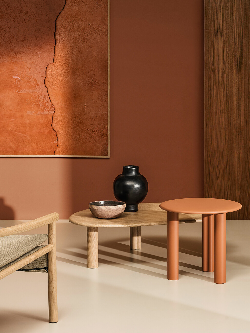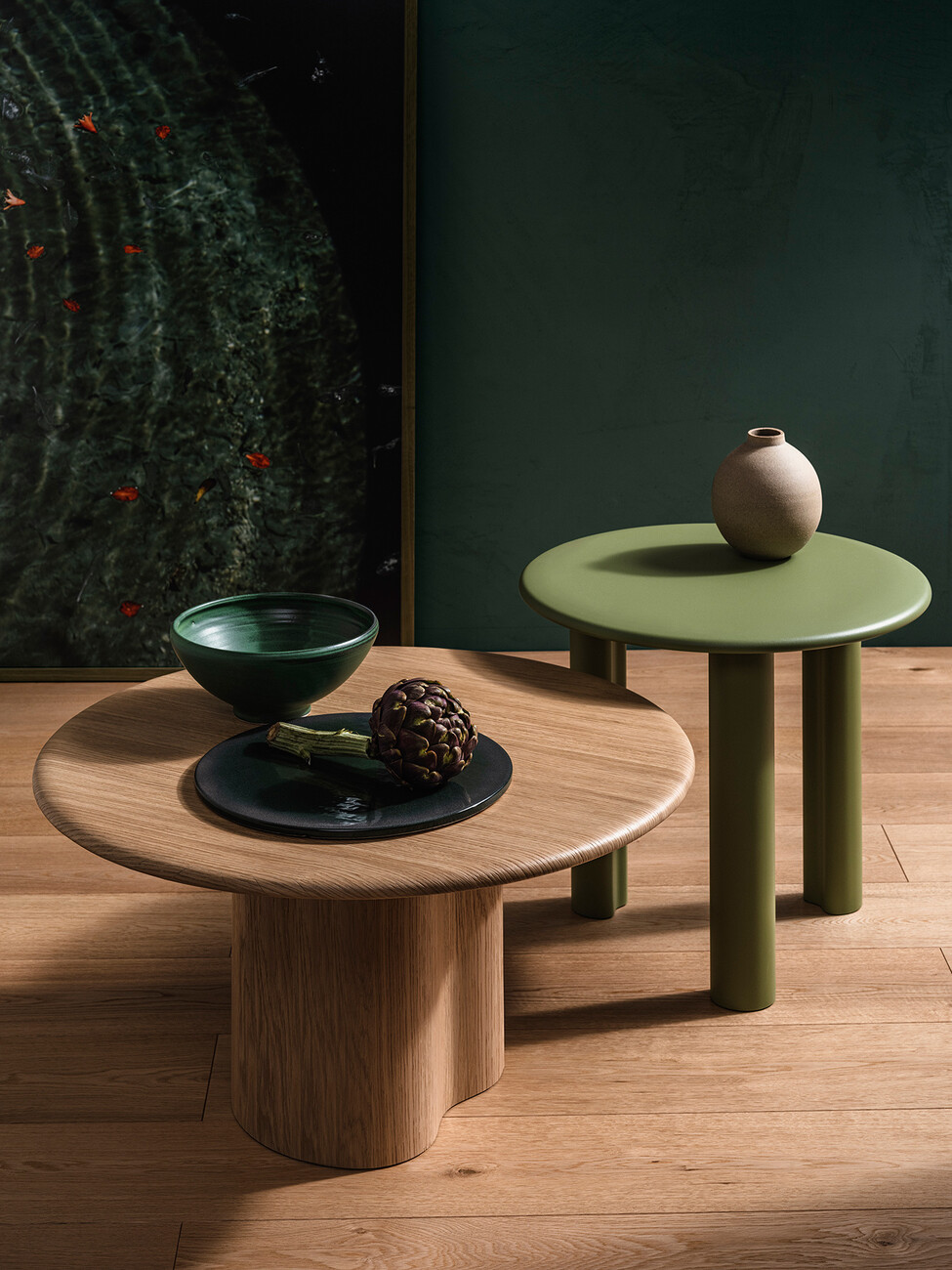 Ein System aus modularen Elementen, aus dem sich eine Vielzahl von Beistelltischen kreieren lässt: Mit "Ghia" haben Altherr Désile Park für Arper eine Kollektion entwickelt, die dem Wunsch nach individuellen Lösungen maximalen Raum gibt. Gestell und Platte sind so flexibel wählbar – vom zentralen Sockel über die Version mit drei Füßen, von der MDF-Platte in natürlicher, schwarz gebeizter oder pulverbeschichteter Eiche bis zum Terrazzo. Die Ghia-Kollektion ist FSC-zertifiziert und frei von Volatile Organic Compound Emissionen. Für die Herstellung der Terrazzoplatten werden ausschließlich natürliche Materialien wie Marmor und Portlandzement verwendet. Der gesamte Prozess erfordert keine Wärme, also keine fossilen Brennstoffe und keine synthetischen Harze. Außerdem wird für den Produktionsprozess kalk-, chlor- und reinigungsmittelfreies Regenwasser verwendet, wodurch die CO2-Emissionen reduziert werden und die Umwelt so wenig wie möglich belastet wird. Auch in der Form bietet "GHIA" eine Balance: Das Zusammenspiel aus geometrischen und organischen Elementen fungiert als Brücke zu den weiteren Loungemöbeln von Arper. Dank des großen Gestaltungsspielraums kann "GHIA" in der Ausführung für jede gewünschte Innenarchitektur angepasst werden. (am)