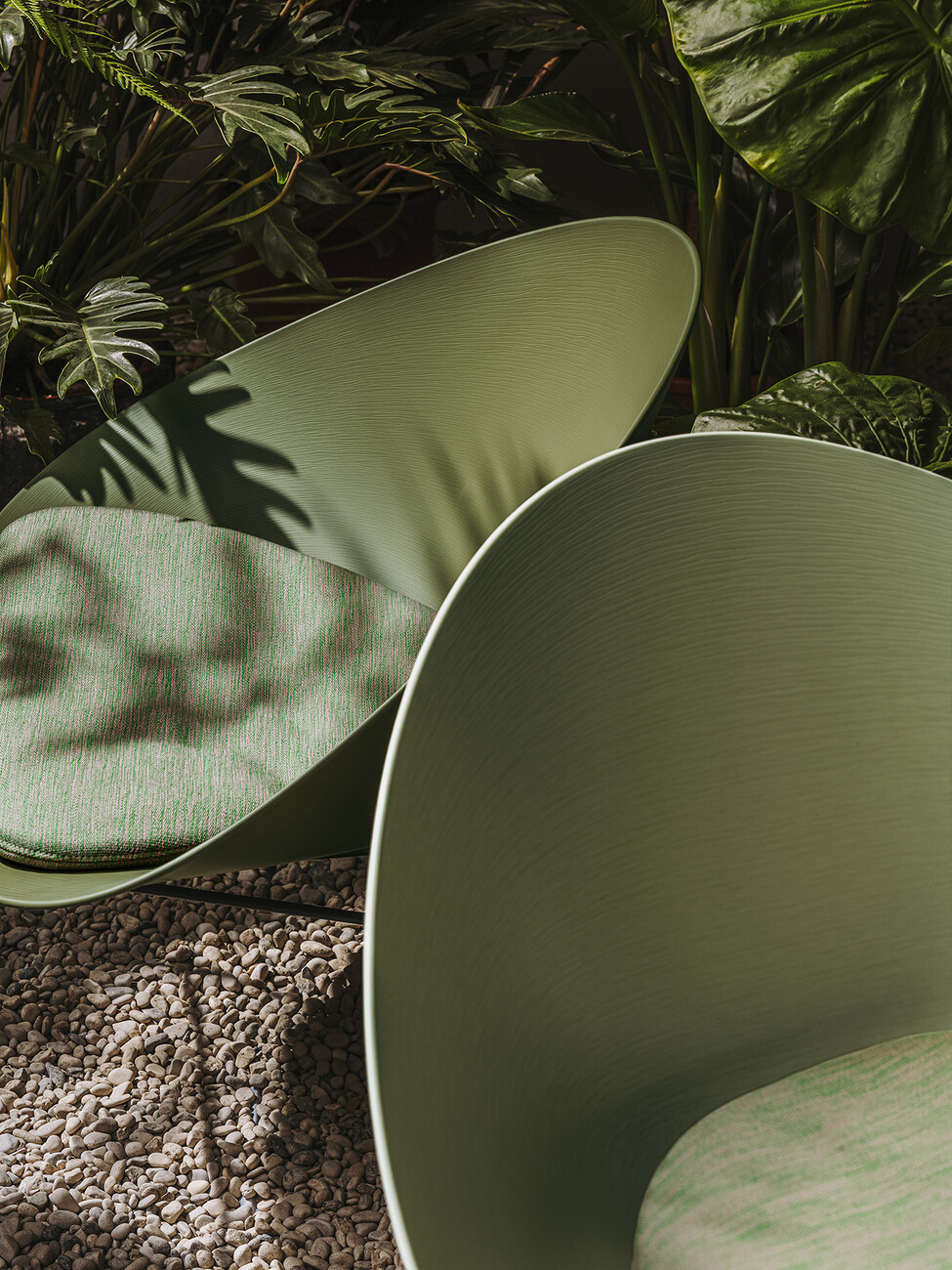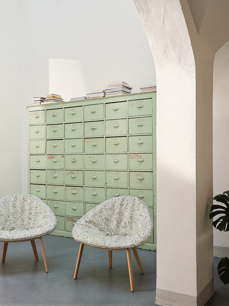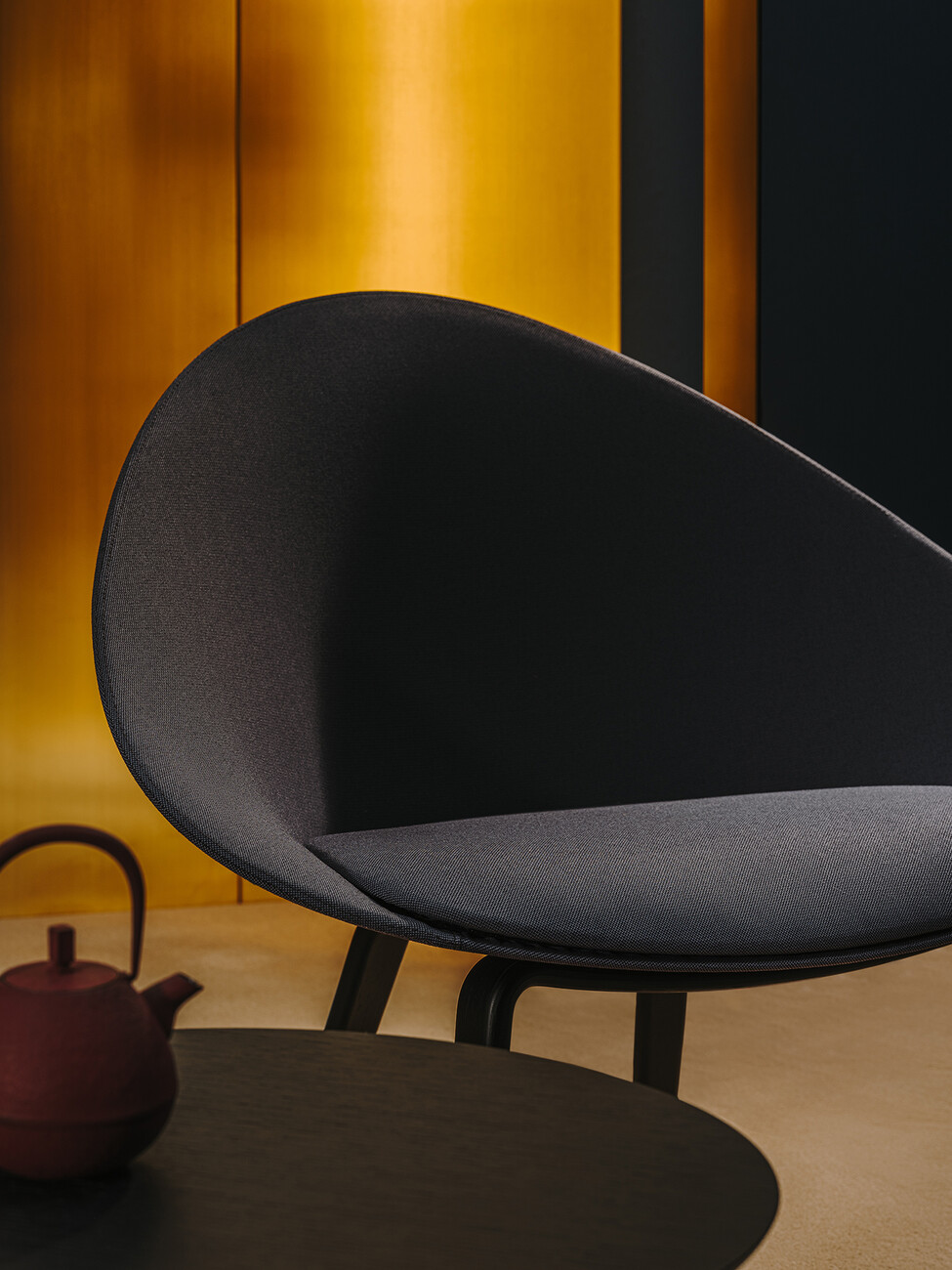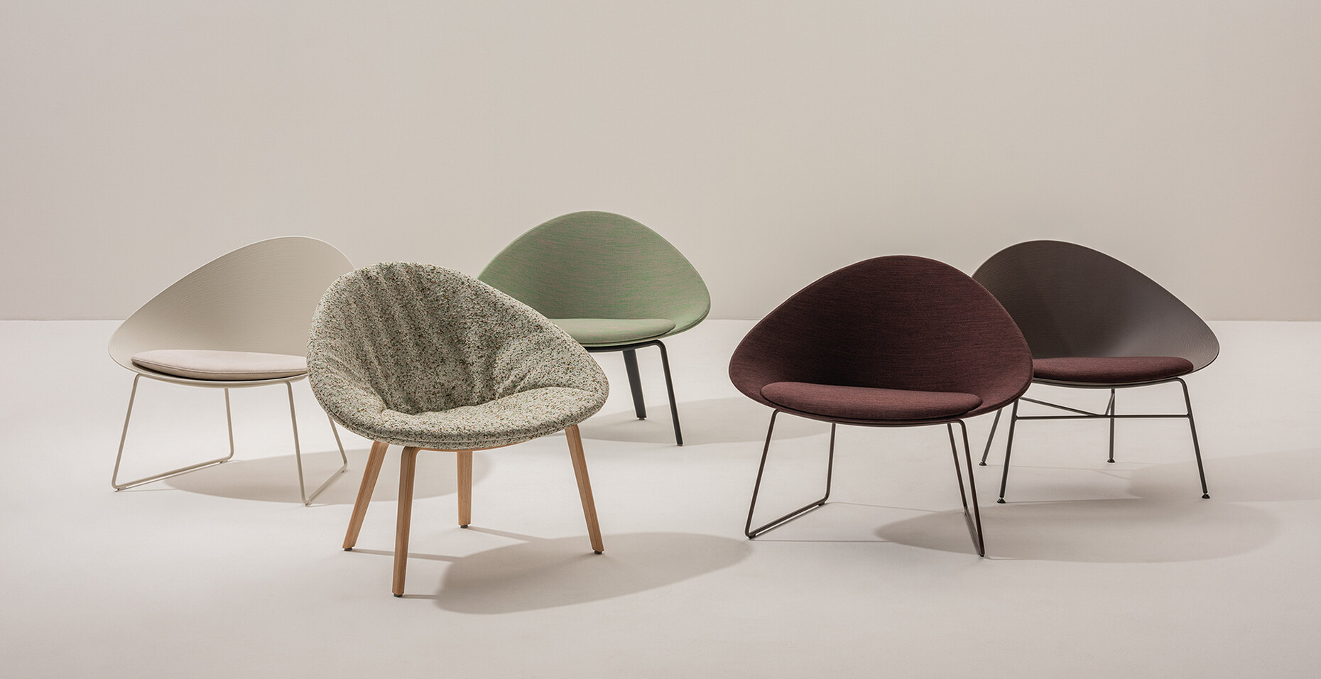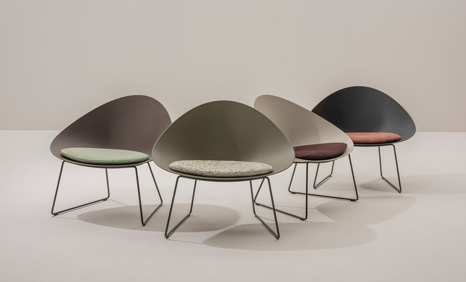 Lievore + Altherr Désile Park haben mit "Adell" für Arper einen Sessel entworfen, der bereits dank seiner organischen Form dazu einlädt, sich eine Pause zu gönnen: Rückenlehne und Sitzfläche der Schale gehen sanft und nahtlos ineinander über. Der Bezugsstoff ist von mehr als 500 feinen Linien durchzogen, die an die Jahresringe von Baumstämmen und das Muster auf der Oberfläche von Muschelschalen erinnern. Respekt vor der Natur zeigt sich auch in der Wahl des Materials für "Adell": Bezug und Sitz sind überwiegend aus recyceltem Polypropylen gefertigt. Ebenso können alle weiteren verwendeten Werkstoffe nach einer langen Lebensdauer dem Kreislauf wieder zugeführt werden.