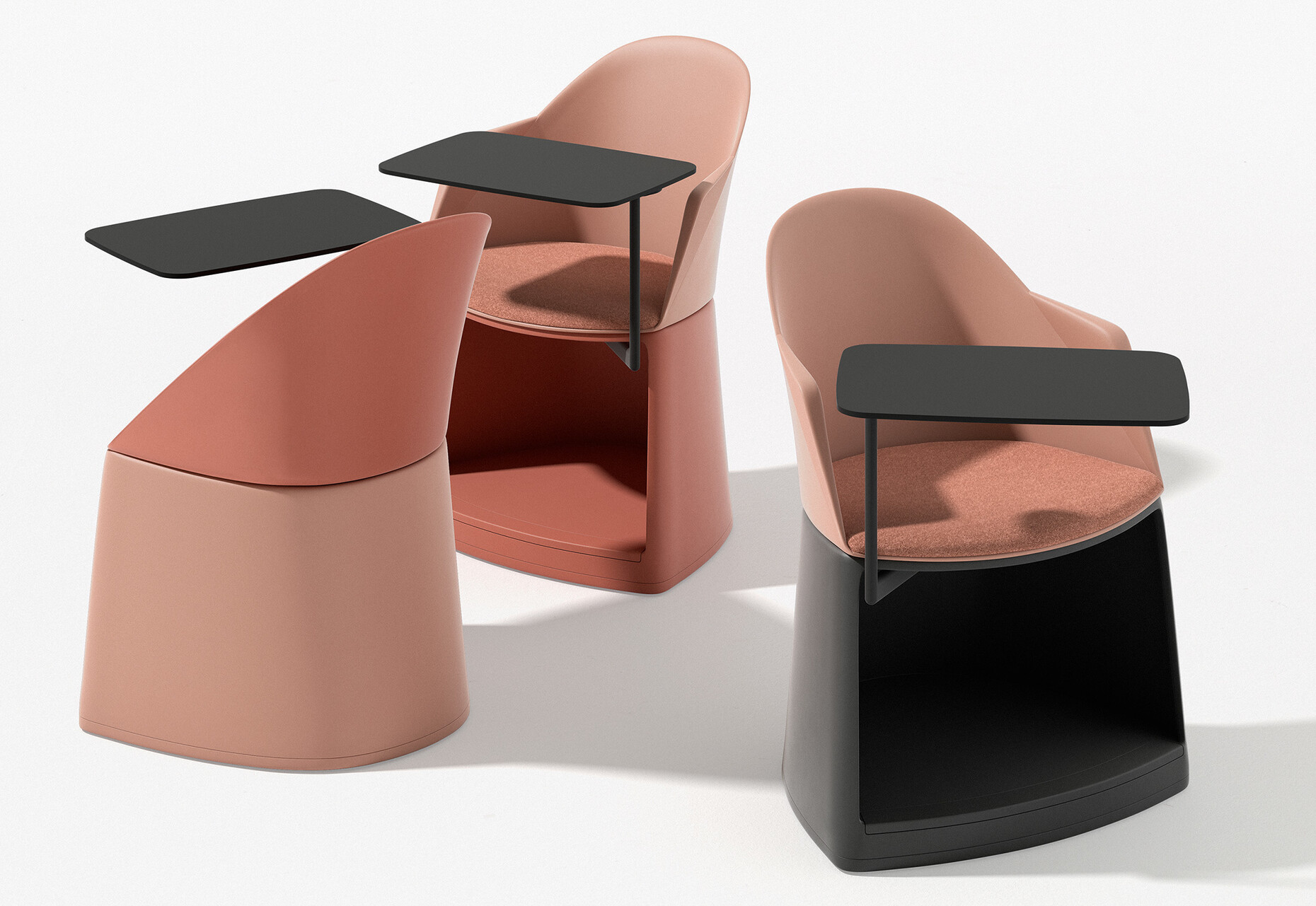 Der erste im Bunde ist die Kollektion "Cila Go", die nichts dem Zufall überlässt: Aus den unterschiedlichen Varianten lässt sich ganz nach Bedarf auswählen, ob Sitz, Stauraum und ein schwenkbarer Laptoptisch gefragt ist, ein fünfstrahliger Drehstuhl mit Schreibbrett ideal wäre oder ein praktischer Hocker mit Stauraum und Sitzkissen. Lievore Altherr haben das mobile System erdacht, dass die Interaktion am Arbeitsplatz erhöht und von der Basisstruktur bis zu der farblichen Ausführung viel Spielraum für individuelle Wünsche lässt.