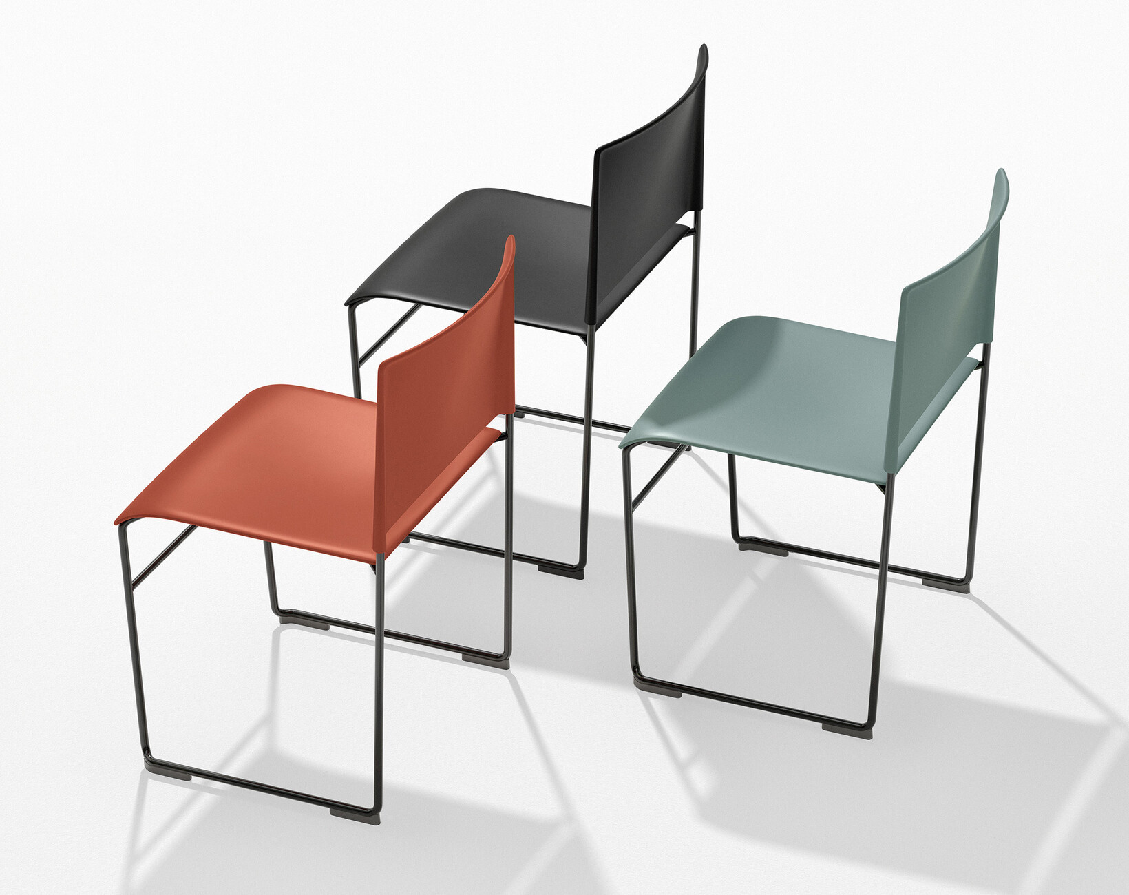 Werden neue Stühle gebraucht, ist die Kollektion "Stacy" von Lievore Altherr ideal: Sitz und Rückenlehne bestehen aus robustem Polypropylen und sind sowohl ein- als auch mehrfarbig wählbar. Das klare, kufenfömige Gestell kann mit oder ohne Armlehnen ausgestattet werden. Auch an eine flexible Ausstattung hat Lievore Altherr gedacht: Optional lässt sich "Stay" auch mit abnehmbaren Tafeln, Abstandhalter, Nummerierungssystem oder Ankopplung der Stühle versehen. Lange Seminare sind dank dem Design von "Stacy" kein Problem mehr: Eine leichte Neigung in der Rückenlehne und das "waterfall shape" im Profil des Sitzes bieten der sitzenden Person einen ergonomischen Komfort.