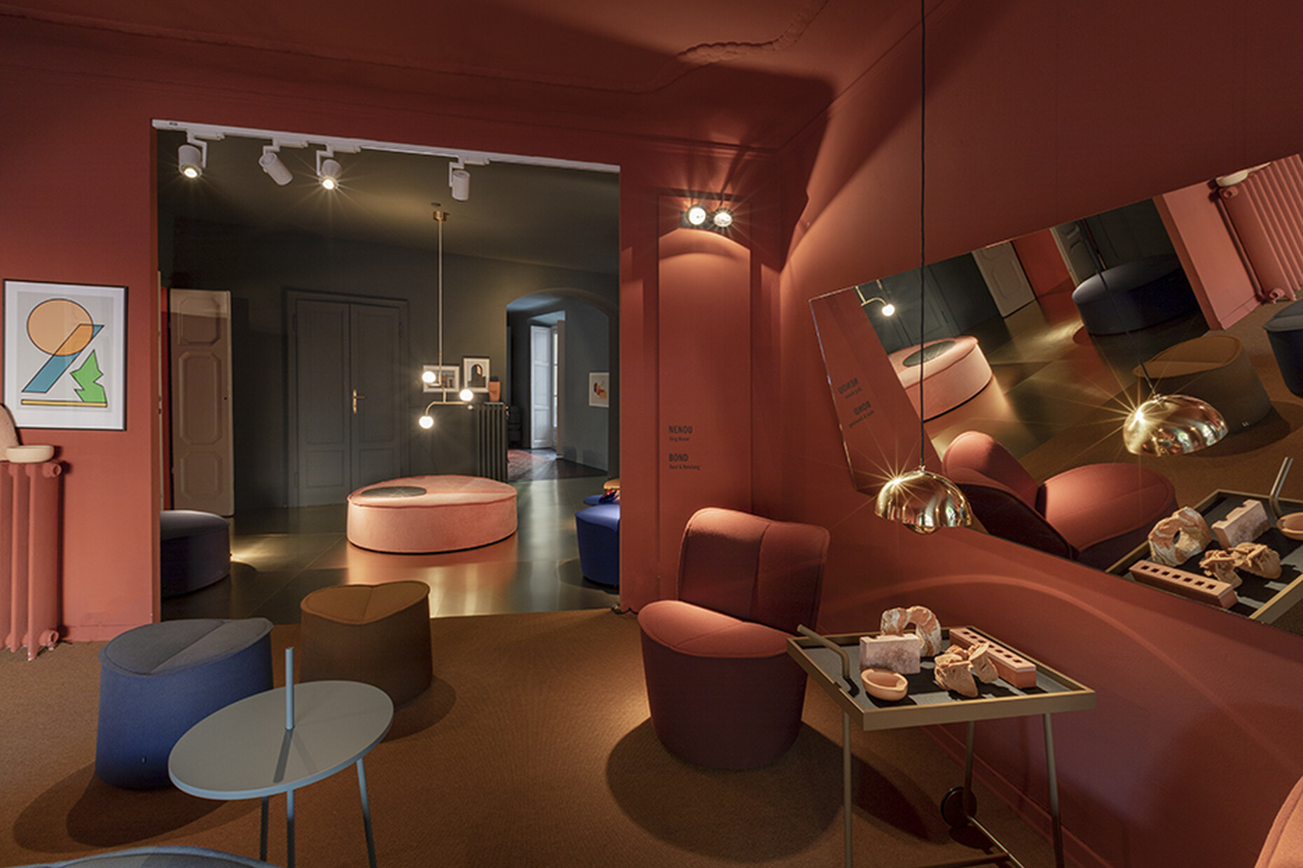 Noch wohnlicher gestaltete der Innenarchitekt Peter Kräling von Büro kräling_lübke das Showapartment des Möbelherstellers Cor in Mailand. Neben einem extravaganten Messingboden ließ er in der Wohnung im Stadtviertel Brera verschiedene Teppichböden verlegen. So gelang es ihm, eine ruhige und entspannende Atmosphäre zu kreieren – und das auch bei vielen Gästen. Das große Entree wurde mit einem im Licht zwischen Altrosa und Rot changierenden Velour ausgestattet, der einen fein ausbalancierten Kontrast zu den feuerroten Wänden bildete. Im Salon dagegen fand ein klassischer Rippenteppichboden Verwendung, den Kräling in Mittelbraun auslegen ließ. Die Wände sind hier in einem Ziegelrot gehalten. So entsteht im Spiel mit Farbnuancen ein abwechslungsreicher, von Raum zu Raum unterschiedlicher Eindruck, ohne dass das Apartment farblich auseinanderfallen würde. Für diese neue Art der Gestaltung, bei der Farbabstufungen verbinden und differenzieren, ist der in den unterschiedlichsten Farbentönen und Materialanmutungen erhältliche Teppichboden geradezu prädestiniert.