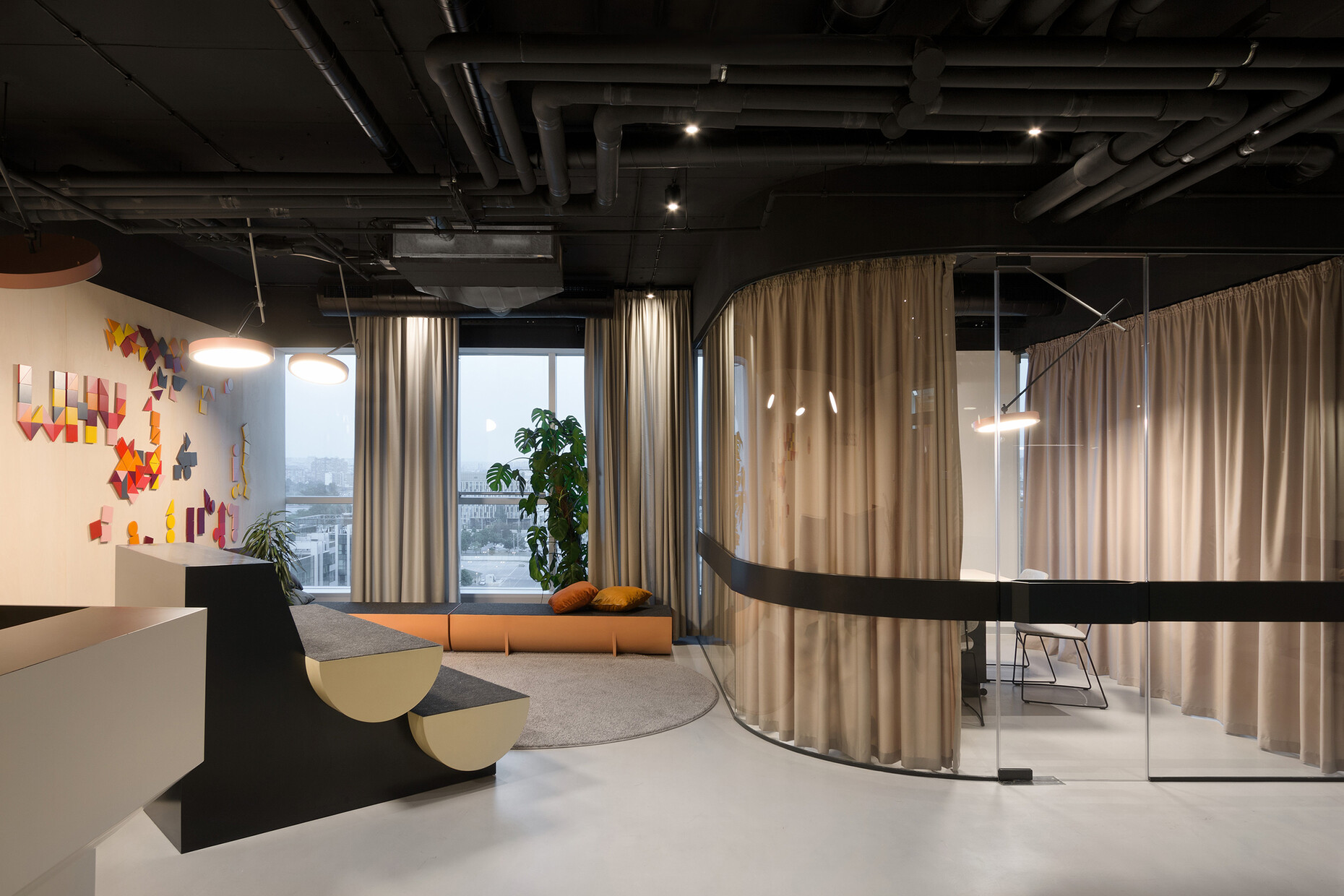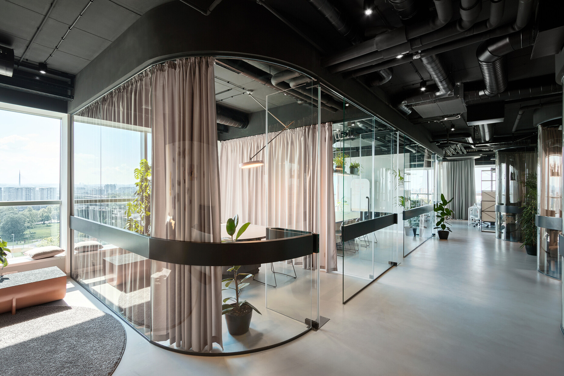 Das Büro des serbischen "iGaming"-Unternehmens „Catena Media“ befindet sich in der Airport City Belgrad – dem neuen Geschäftsviertel der serbischen Hauptstadt. Für das Großraumbüro haben die Architekten von Autori eine ebenso ausgewogene wie anspruchsvolle Mischung aus unterschiedlichen Arbeitszonen und diversen Rückzugsbereichen samt spielerisch-sportiver Ablenkung entwickelt. Dabei setzt das Architekturbüro Autori nicht auf schreiend bunte Farben und Themenwelten wie man sie beispielsweise von Googles Bürowelten kennt. Bei Catena Media ist die Welt der Nerds und Techies recht elegant ausgefallen. Den Raum dominieren zurückhaltende Farben und Materialen, Wände aus hellem Birkenholz sorgen für eine ausgesprochen warme Atmosphäre.