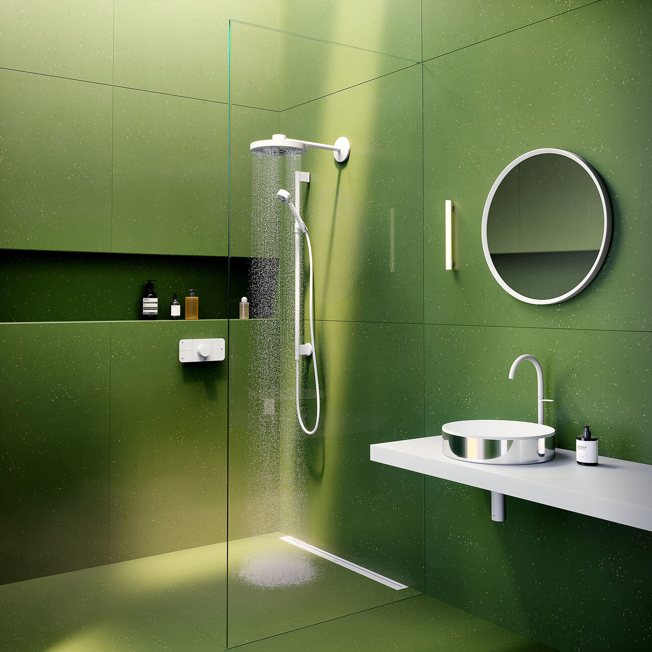 Diese ist in den "AXOR FinishPlus"-Farben und -Oberflächen sowie in Chrom, pulverbeschichtetem Matt Black oder Matt White verfügbar und kommt ohne sichtbare Silikonfugen aus. Eine herausnehmbare Schablone dient als Einbauhilfe, was eine optimale Positionierung der Fliesen vor dem Einsetzen der Designabdeckung ermöglicht. "AXOR Drain" ist sowohl in einer Variante für den Einbau an der Wand als auch für eine freie Platzierung im Raum erhältlich. NutzerInnen können bei den Geruchsverschlüssen zwischen dem vorinstallierten Standard-Siphon und dem mitgelieferten Dryphon wählen, der eine selbstöffnende Silikonmembran enthält. Die Duschrinne ist dabei pflegeleicht, einfach zu installieren und erlaubt einen problemlosen Zugang zum gewählten Ablaufmechanismus. Gleichzeitig harmoniert sie aufgrund ihres minimalistischen Erscheinungsbilds mit den unterschiedlichsten Materialien und fügt sich so in jedes Badezimmer-Szenario ein. (ar)