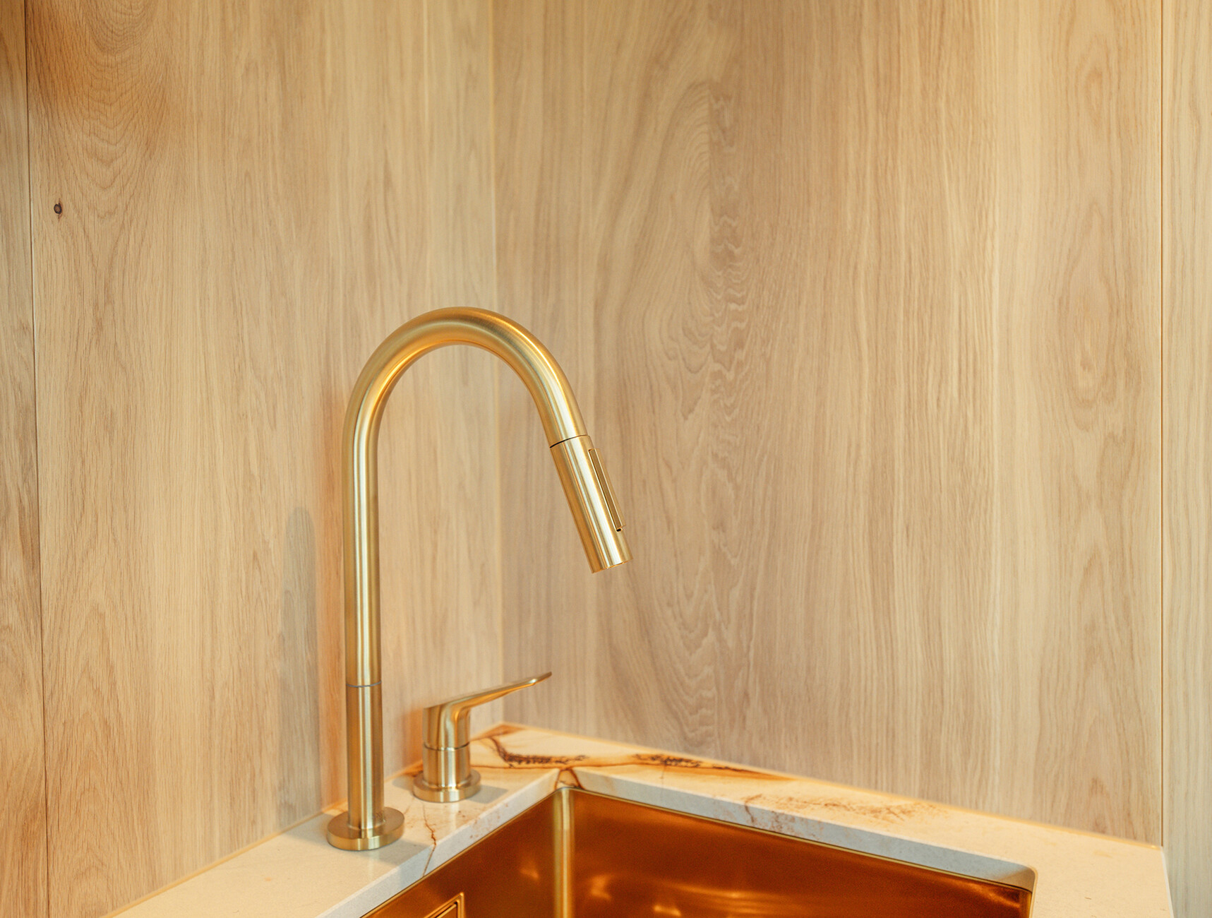 Andreas Tiik: Genau, der Fokus liegt auf den Materialien – die Armaturen und Arbeitsplatten sollten möglichst elegant und edel sein.