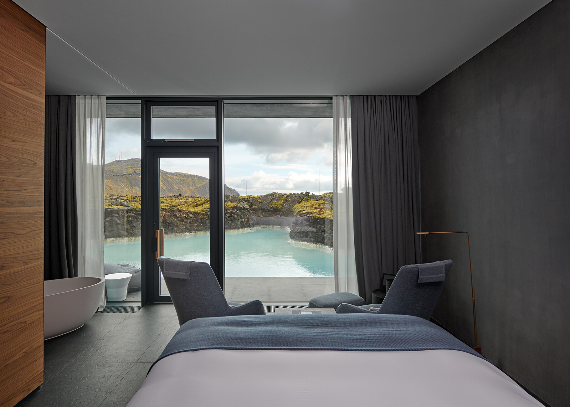 Erholung ist in diesen stressigen Zeiten ein knappes Gut – die Suche nach Stille, einer reizarmen Umgebung und luxuriösem Komfort wird zur Herausforderung. Das fünf Sterne Resort "Blue Lagoon" erfüllt all diese Wünsche mühelos und gewährt zudem ein unverfälschtes und direktes Erleben der faszinierenden Natur Islands. Das von Basalt Architects entworfene Hotel bietet 62 Zimmer, ein unterirdisches Spa, sowie ein Restaurant, die in eine natürliche Lavawand gebaut wurden. Von den zahlreichen Panoramafenstern aus kann man das moosbedeckte Vulkangestein des Lavafelds Svartsengi sowie die Lagune überblicken, die mit geothermisch erwärmtem Seewasser gespeist wird. Angenehm temperiert ermöglicht das azurblaue, klare Wasser den Gästen auch im tiefsten Winter ein erholsames Bad inmitten einer Schneelandschaft zu genießen. Wellness für den Körper und die Seele wird hier auf eine neue Ebene gehoben.