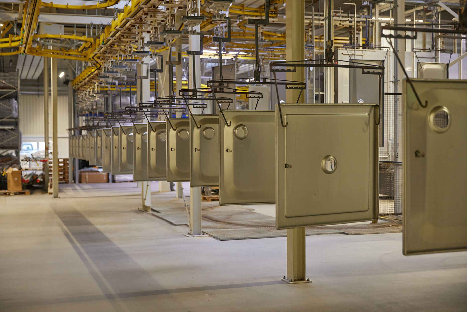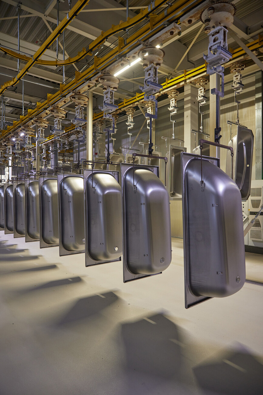 Thilo Pahl: Das Material glasierter Stahl ist zu 100 Prozent kreislauffähig. Die Anti-Dröhn-Matten, die das Geräusch von Wasser abdämpfen, sind allerdings noch aus Kunststoff gefertigt, da sind wir ehrlich. Innerhalb des Werkes ist der Kreislauf der Materialien geschlossen, jeder "Abfall" der Produktion wird erneut eingesetzt. Am Ende des Jahres wissen wir stets wieviel Tonnage in den Kreislauf zurückgegeben und bei einem der Stahlhersteller im Hochofen weiterverarbeitet wurde. Übrigens muss das Emaille nicht vom Stahl getrennt werden, es geht mit in Hochofen und schwimmt als Schlacke auf. Zurzeit werden unsere Öfen noch mit Gas befeuert, wir denken aber über Alternativen nach und auf den elektrischen Betrieb zu wechseln, ist auf jeden Fall eine Überlegung. Etwa eine halbe Stunde Fahrtzeit von Delbrück steht der größte Windpark der Region, in Lichtenau, der mit Beteiligung der BürgerInnen entstanden ist. Auf diese grüne Energie könnten wir sicher aufbauen.