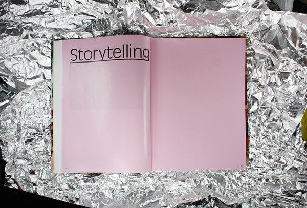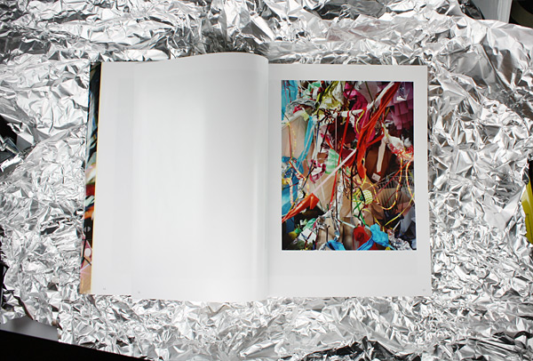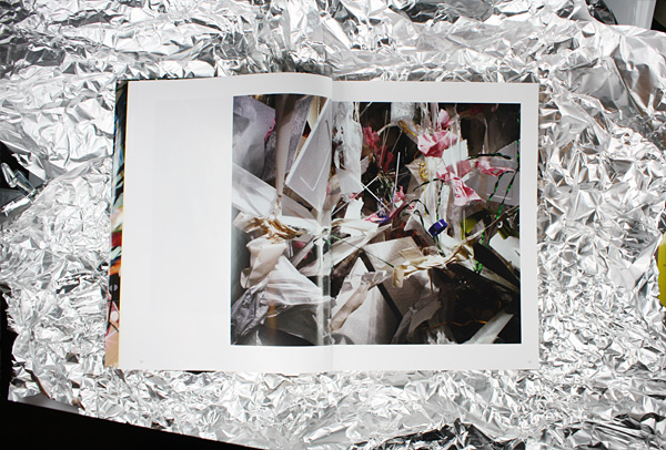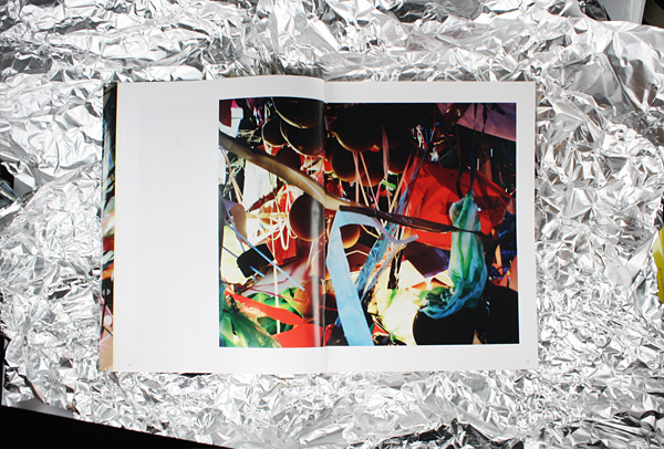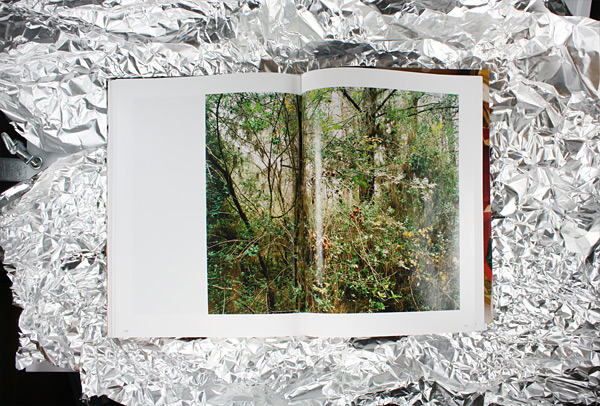 Das Buch hat mich an eine alte Geschichte aus der Kindheit erinnert, an mein Sammelheft mit Staniolpapier. Ein unbenutztes Notenheft - sehr musikalisch bin ich bis heute nicht - diente mir als Aufbewahrungsort für ein paar empfindliche und mir sehr kostbare Folien, die zuvor hauptsächlich Osterhasen und Weihnachtsmännern aus Schokolade als Kleid gedient hatten. Jede Folie wurde sorgfältig entfaltet, mit dem Fingernagel geglättet und zwischen zwei Seiten aufbewahrt. Das Heft wurde mit jeder neuen Folie dicker, und mein Stolz wie bei jedem passionierten Sammler größer. Astrid Korntheuer interessiert sich für Dickicht, Verwirrungen und Spiel. Und ihre Bilder erzählen Geschichten, sei es die Geschichte eines Festes oder der Versuch im Kinderzimmer eine Hütte zu bauen, um darin ins Peter-Pan-Land zu fliegen. Die Fotografien der ersten Serie zeigen Schnipsel, Reste und Fetzen von Lichterketten, Alufolien, Wellpappen, Glitzerfolien, also jede Menge chaotischer Materialvielfalt. Alles erscheint durcheinandergewirbelt, der Schwerkraft enthoben. Raumgrenzen verschwimmen, die Raumtiefe lässt sich nicht fassen. So entstehen überquellende Wimmelbilder ohne Zentrum und Orientierungsmöglichkeit. Fünf fotografische Serien der Künstlerin sind in dem von Antonia Henschel einfühlsam gestalteten und von Trademark Publishing herausgegebenen Bildband versammelt. Großflächig und hauptsächlich auf der rechten Seite sind die Fotografien von Astrid Korntheuer auf zartem, leicht glänzendem Papier angeordnet. Jede Serie ist durch farbiges Papier von der nächsten Serie getrennt. Angefangen mit dem künstlichen Chaos der „Natures Mortes", die von hellgelben Seiten eingeleitet werden, über die Arrangements von „Storytelling" in hellrosa bis hin zu den Dickichtbildern „Paintings" in hellgrün. Die Serie „Glör" beispielsweise zeigt einen temporären Zustand der Natur. Wildes Gestrüpp, Büsche, Gräser, kleine Bäume. In den Bildern fehlt der Horizont, wir sehen Natur ohne eine sichere Zukunft, abgelichtet in einer Mischung aus Tageslicht und dem Licht der aufkommenden Nacht, aufgenommen 23 Minuten nach Sonnenuntergang. Es sind ruhige und melancholische Bilder, die trotz des augenscheinlichen Durcheinanders, das sie wiedergeben, das Abgebildete nahezu komplett auflösen und zu einer gleichmäßigen strukturierten Masse verschmelzen lassen. Womit sie einen schönen Kontrapunkt zur Serie der „Natures Mortes" bilden, in der künstliches, aus Industrieprodukten erstelltes Gestrüpp den Blick fesselt. Auch die Gestaltung des Buches schlägt einen Bogen von der äußeren Welt zu den inneren Bildern. Indem der lose Buchumschlag einen vergrößerten Ausschnitt des ersten Fotos aus dem Bildband zeigt, öffnet sich von Außen ein kleines Fenster in die Welt der Astrid Korntheuer. Der komplett bedruckte Einband gleicht Geschenkpapier und verhüllt das Buch wie ein kostbares Geschenk - eines voller Geschichten. Astrid Korntheuer