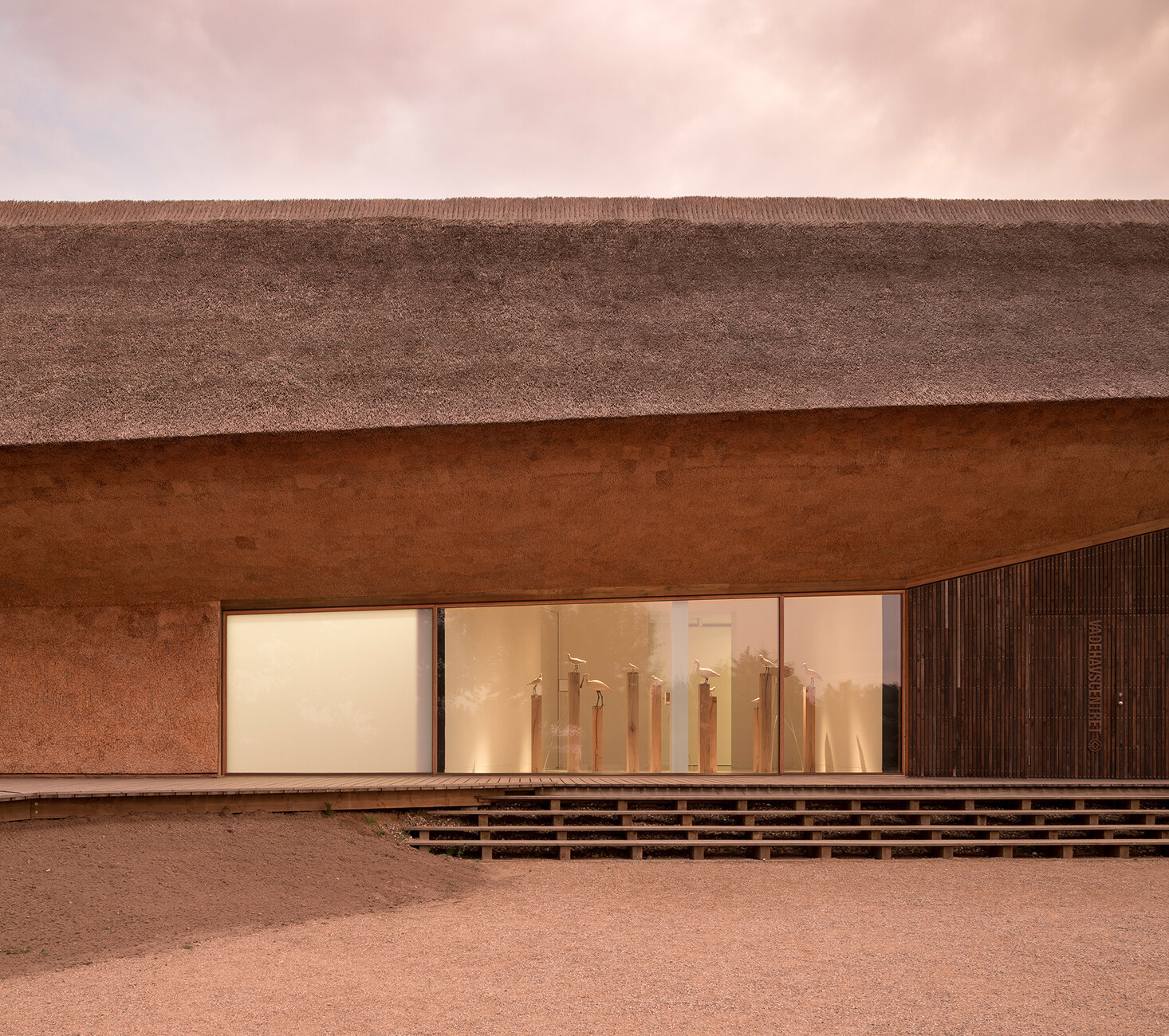 Da ist das Wal-Observatorium 185 Meilen nördlich des Polarkreises in Norwegen, das sich im Wind duckend in die Landschaft schmiegt und mit seiner Stromlinienform tatsächlich an einen Wal erinnert. Oder das 2021 vollendete Wattenmeer-Zentrum im Ribe, errichtet in traditioneller Reetdach-Bauweise, jedoch alles andere als heimattümelnd, sondern als Bauskulptur, die aus der Landschaft erwächst und den Ort zum Sprechen bringt. Das darüber hinaus eine künstlerische Aussage jenseits der Alltagspragmatik macht und trotzdem als zeitgemäßes Infozentrum und Museum erscheint und perfekt seine Funktion erfüllt. Ebenso das überraschenderweise ziemlich elegant wirkende Icefjord Besucherzentrum in Ilulissat, am Ende der Zivilisation 250 km nördlich des Polarkreises an der Westküste Grönlands gelegen. Mit seiner dynamischen Bumerang-Form und dem begehbaren Dach setzt es die landschaftlichen Linien fort und scheint, leicht schwebend aufgeständert, die Natur so wenig wie möglich berühren und stören zu wollen. Die gläsernen Fassaden bieten eine überwältigende Aussicht auf die Gletscherlandschaft – wie lange noch?