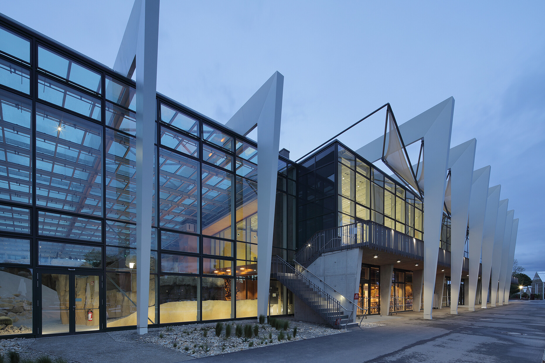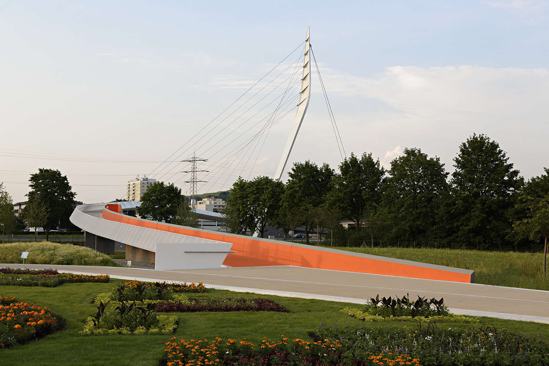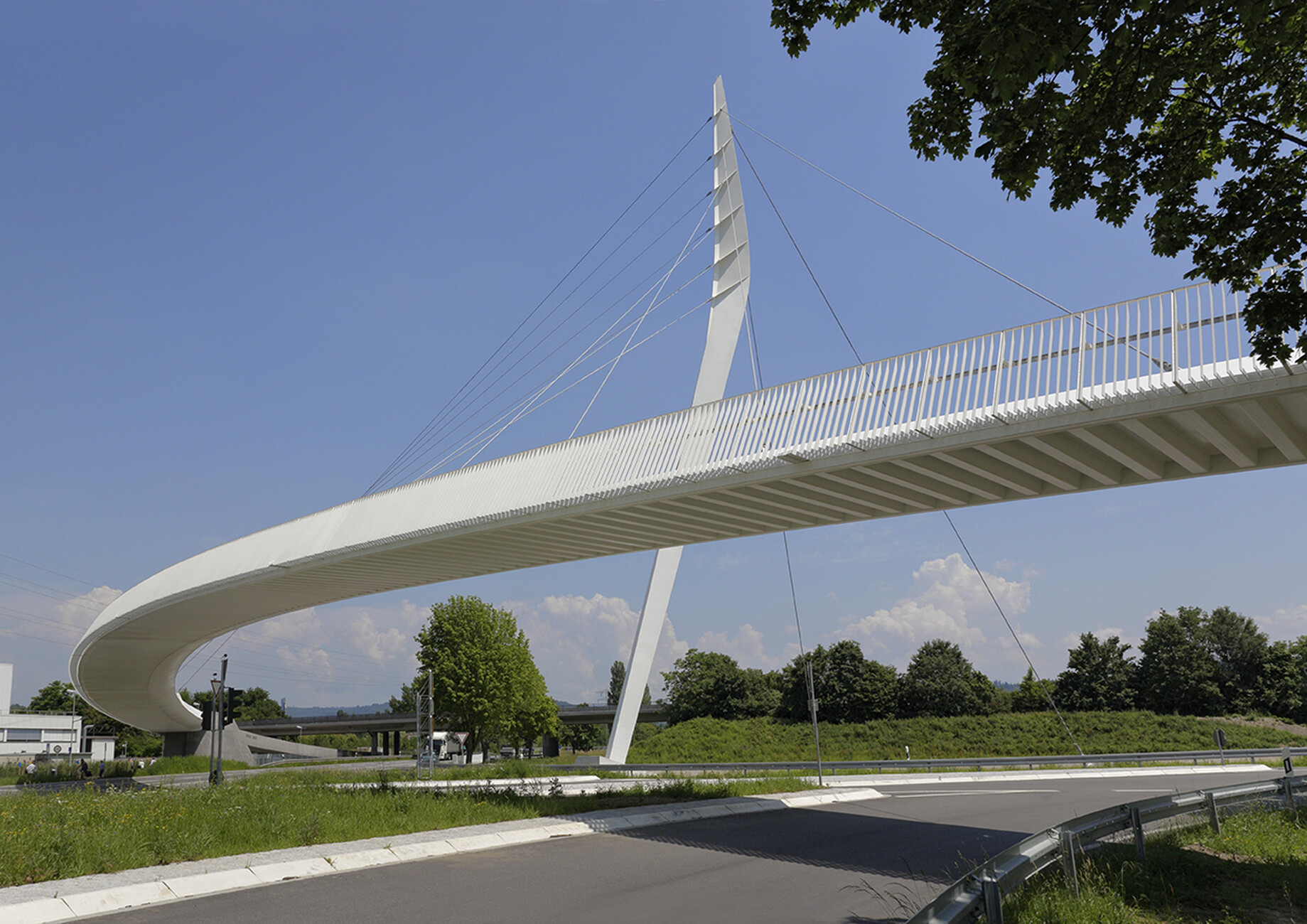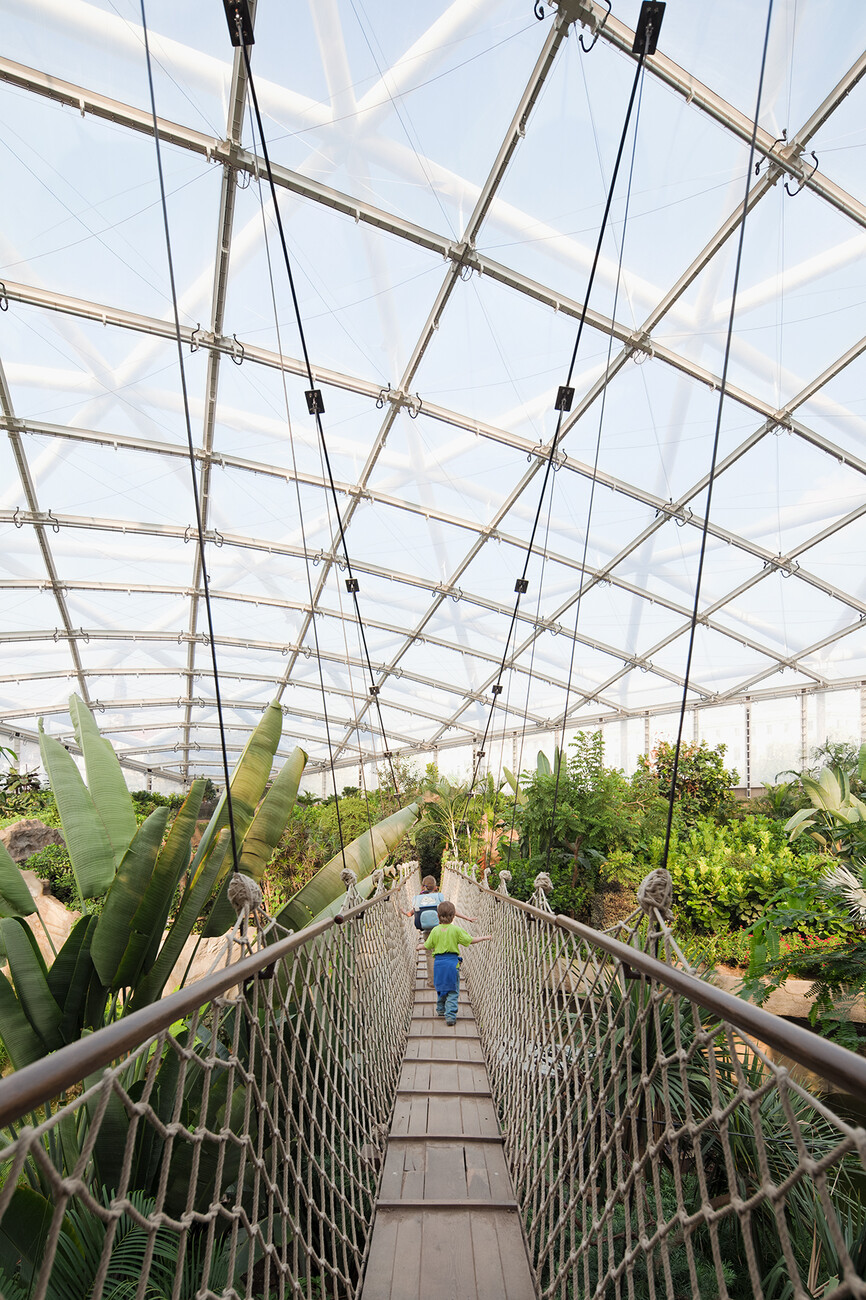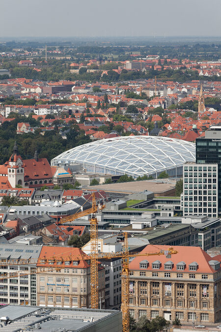 Beim Bauen im Bestand wirken BauingenieurInnen oft im Verborgenen und anders als Architekturschaffende können sie oft nicht mit attraktiven Fotos signifikanter Tragwerke und dramatischer Konstruktionen aufwarten. Immerhin haben EiSat mit dem Erstlingswerk, der Waldschlösschenbrücke, eine solche Arbeit vorzuweisen und auch andere Bauten haben es auf die Titelseiten der Fachblätter und in die Tageszeitungen geschafft. "Gondwanaland" zum Beispiel, die Tropenlandschaft im Leipziger Zoo mit der spektakulären Kuppelüberdachung von EiSat. Benannt nach dem Urkontinent der Erdfrühzeit, präsentiert das Regenwald-Erlebniscenter Flora und Fauna aus drei Kontinenten. Überdacht wird das Biotop von einer im Grundriss sphärischen Stabwerkskuppel aus Dreieckselementen mit einer Spannweite von 160 Metern. Der Bau sollte eine markante Form im Stadtraum bilden und mit der äußeren Gestalt seiner besonderen Nutzung entsprechen (mit Obermeyer Albis-Bauplan und Henchion Reuter Architekten). Ebenfalls mit Henchion Reuter realisierten EiSat eine signifikante Fußgängerbrücke im südbadischen Lahr. Ein eleganter Stahlbogen reckt sich in die Höhe, an dem der schwungvoll gebogene Brückensteg mit dünnen Stahlseilen abgespannt ist. Eine materiell äußerst reduzierte Konstruktion, deren Kraftflüsse jedermann eingängig sind. Man meint, die Drähte wie Seiten im Wind schwingen zu hören.