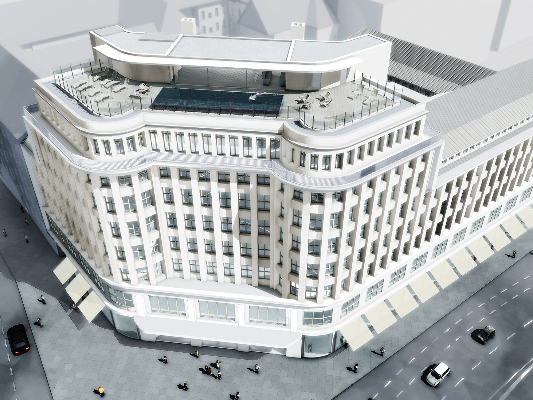 Wie packt man eine neue Aufstockung mit Schwimmbad auf einen betagten Eisenbetonskelettbau aus dem Jahr 1928? Diese Frage stellte sich den IngenieurInnen beim Umbau des ehemaligen "Kreditwarenhauses Jonaß" in ein Apartmenthotel mit Club an der Torstraße in Berlin. In Zusammenarbeit mit JSK SIAT ArchitektInnen war das gesamte Programm zu absolvieren: Fundamentertüchtigung, Betonsanierung, Umbau und Ergänzungen, Neuordnung der Gebäudeaussteifung et cetera. An Komplexität der Planungs- und Realisierungsaufgabe war kein Mangel und mit Routinestatikberechnungen war dem nicht beizukommen.