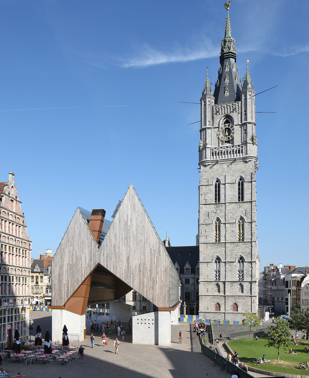 Wohnhäuser zu entwerfen war also zum Teil eine Entscheidung von Van Hee, zum größeren Teil aber schlicht das, was ihr als Architektin möglich war. Ab 1990 beginnt sie eine immer engere Zusammenarbeit mit ihren ehemaligen Studienkollegen Paul Robbrecht (*1950) und Hilde Daem (*1950). Die zwei hatten direkt nach dem Studienabschluss ihr eigenes Büro "Robbrecht en Daem Architecten" eröffnet, das heute zu den bekanntesten belgischen Büros zählt. Zusammen mit ihnen arbeitet Van Hee nun auch an Aufträgen jenseits der privaten Wohnhäuser – eine Kunstgalerie in Elsene (1990-1992), die vollständige Neugestaltung des Leopold-De-Wael-Platzes in Antwerpen (1997-1999) und schließlich ihr wohl bekanntestes Projekt, die Neugestaltung des Emile-Braun-Platzes im Zentrum von Gent (1996-2012). In die Mitte dieses Platzes stellten Robbrecht, Daem und Van Hee ein großes, nach allen Seiten offenes Dach aus Holz, hochgestellt auf vier Sockelfüßen aus Beton. Mit dieser seltsam vertrauten Silhouette eines doppelten Satteldaches schaffen die ArchitektInnen ein neues Gravitationszentrum für den völlig asymmetrischen Platz, der bis dahin vor allem als Parkplatz genutzt worden war; ein neues Zentrum, das für vielfältige Inbesitznahme offensteht. In einem der Betonfüße ist sogar ein funktionierender Kamin eingesetzt. "Ja, wir hatten die Vorstellung, dass das Stadtzentrum eine Art Zuhause ist", so Van Hee. Und das wird angenommen: Unter dem Dach finden Festivals, Konzerte, Hochzeiten statt, manche stellen Tische auf und essen dort. Es ist eine völlig neue Typologie: eine Markthalle der Möglichkeiten. Das Projekt wurde weltweit publiziert und vielfach mit Preisen ausgezeichnet, so wurde es 2013 für den Europäischen Mies van der Rohe-Preis und 2014 für den Europäischen Preis für den öffentlichen Stadtraum nominiert.