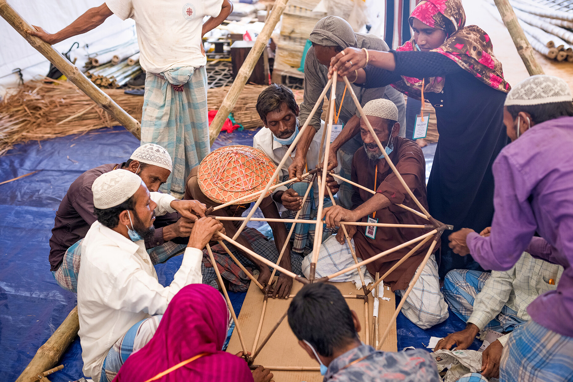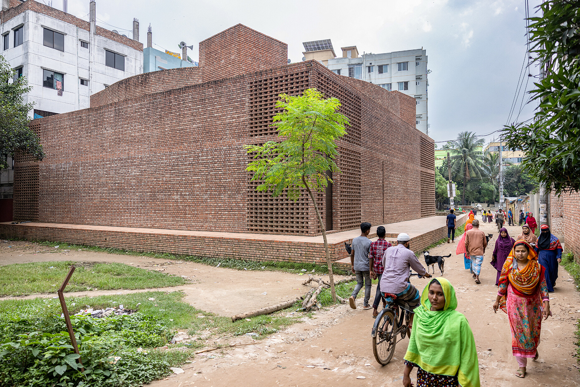 Bangladesch ist die Heimat hunderter Flüsse, die sich als Wasseradern durch das 160 Millionen EinwohnerInnen zählende Land ziehen. Zwischen Himalaya-Massiv und der Bucht von Bengalen eingebettet, liegt es im größten Deltagebiet der Erde – halb so groß wie Deutschland, aber doppelt so dicht besiedelt. Hinzu kommt die Hauptstadt Dhaka am Ufer des Buriganga-Flusses mit 21 Millionen EinwohnerInnen. Sie ist der Regierungssitz des Landes und zählt zu den größten, dichtesten und am schnellsten wachsenden Megastädten der Welt. Bangladesch ist zudem die Heimat einer spannenden Architekturszene. Zu den bekanntesten VertreterInnen zählt Marina Tabassum, deren Projekte von prestigeträchtigen Kulturbauten über sakrale Architektur bis zu mobilen Flüchtlingsunterkünften reichen. Ein Beispiel ist die Bait-Ur-Rouf-Moschee in Dhaka, bei der die Architektin auf die Anfänge des Moscheenbaus zurückgriff und eine fein komponierte Struktur aus Licht und Raum schuf. Der Bau, für den sie 2016 den Aga Khan Award für Architektur erhielt, dient nicht nur als Gebetstätte, sondern zusätzlich als Gemeinschaftszentrum für die BewohnerInnen des Quartiers.