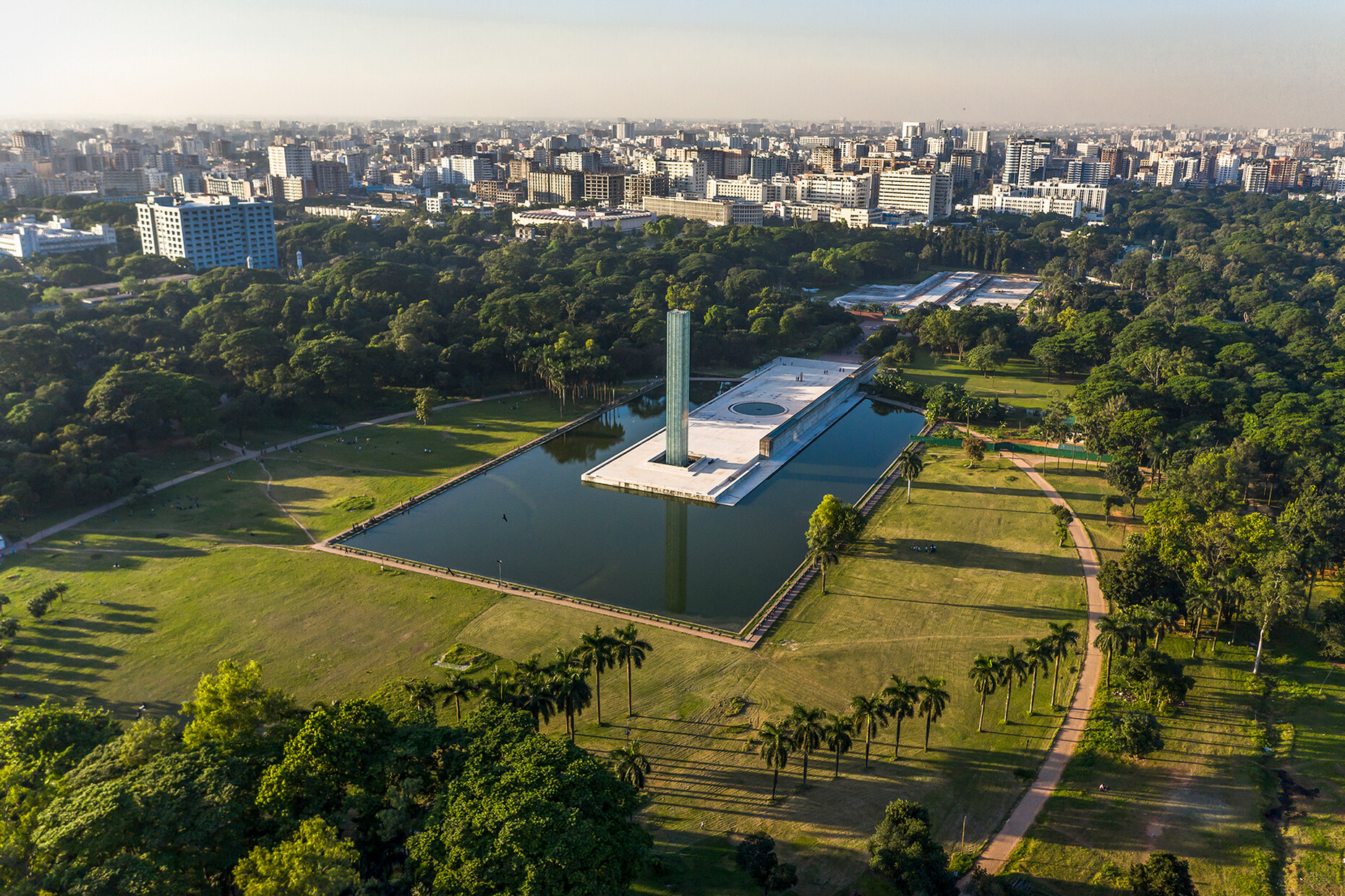 Das gilt auch für Marina Tabassum. Nach ihrem Architekturstudium an der Bangladesh University of Engineering and Technology BUET war sie zunächst zehn Jahre lang Partnerin beim Architekturbüro Urbana, das sie 1995 zusammen mit Kashef Mahboob Chowdhury gegründet hatte. In dieser Zeit gewannen die beiden den Wettbewerb für das Independence Monument and Museum of Independence in Dhaka, das sich mit der Geschichte des Landes und seinem Kampf um Unabhängigkeit auseinandersetzt. Dafür platzierten sie ein Unabhängigkeitsdenkmal auf einem neu gestalteten Platz in Form eines schlanken, mit Glas verkleideten Turms. Das eigentliche Museum wurde unterirdisch angeordnet, ebenso wie eine Wassersäule, die an die Opfer des Bangladesch-Kriegs 1971 erinnern soll. "Die Unabhängigkeit Bangladeschs ist eine Geschichte der Dualität: Sie wurde durch die selbstlose Aufopferung eines brutalen Krieges erlangt. Zwei Lichtsäulen definieren die beiden Ereignisse. Die eine steht auf dem Platz als Leuchtfeuer der Hoffnung, die andere ist eine Wassersäule, die den Schmerz des Verlustes einfängt. Die eine ist ohne die andere nicht vollständig", erläutert die Architektin das Konzept.