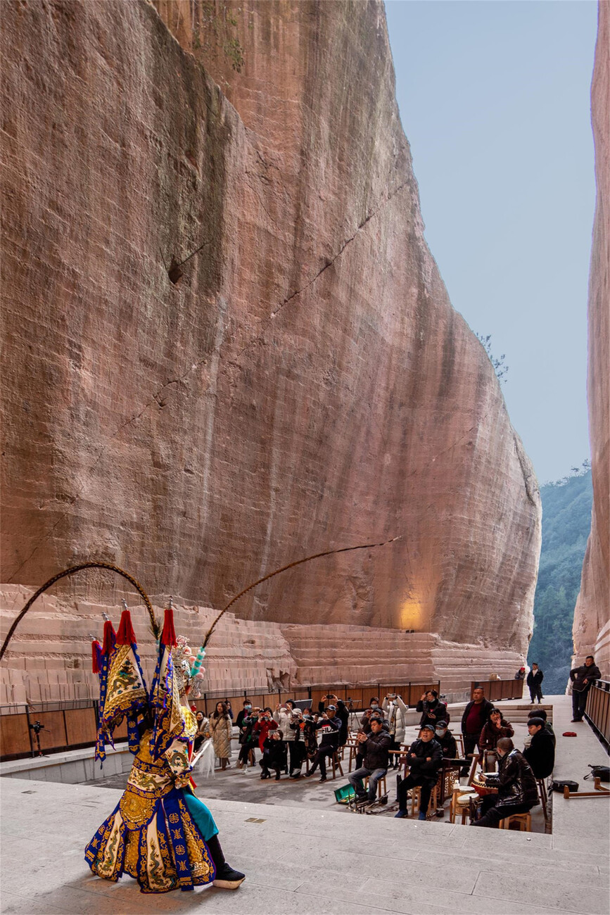 Eines der neuesten Projekte der Architektin zählt auch gleichzeitig zu ihren eindrucksvollsten. Es befindet sich nicht in Songyang, sondern in der nahe gelegenen ehemaligen Bergbauregion Jinyun. Dort hat Xu Tiantian drei Steinbrüche im Tal Xiandu jeweils in eine Open-Air-Bibliothek, einen Versammlungsort und eine Bühne für Opernaufführungen verwandelt. Die tatsächliche architektonische Intervention kommt – komplementär zu den beeindruckenden Felsformationen – zurückhaltend daher. So besteht die Bibliothek aus einer filigranen, mit Bambus ausgefachten Stahlkonstruktion, die sich in Form von Treppen und Galerien über die steinerne Kulisse legt. Was bescheiden und einfach wirkt, bedurfte einer großen Anstrengung, da die bis zu 38 Meter hohen, von Menschenhand geschaffenen Hohlräume des Tuffsteingebirges in Teilen aufwändig mit Beton stabilisiert werden mussten.