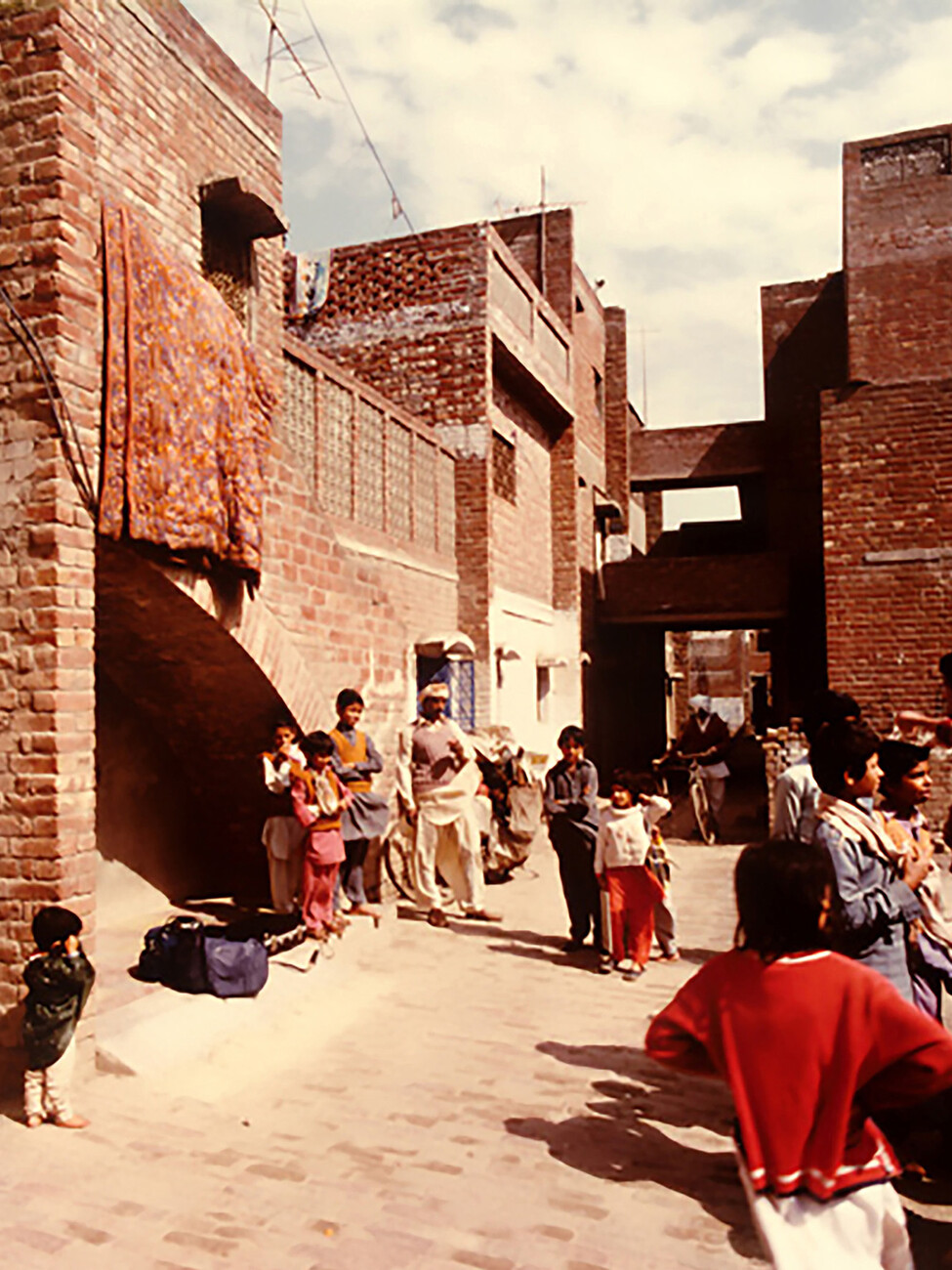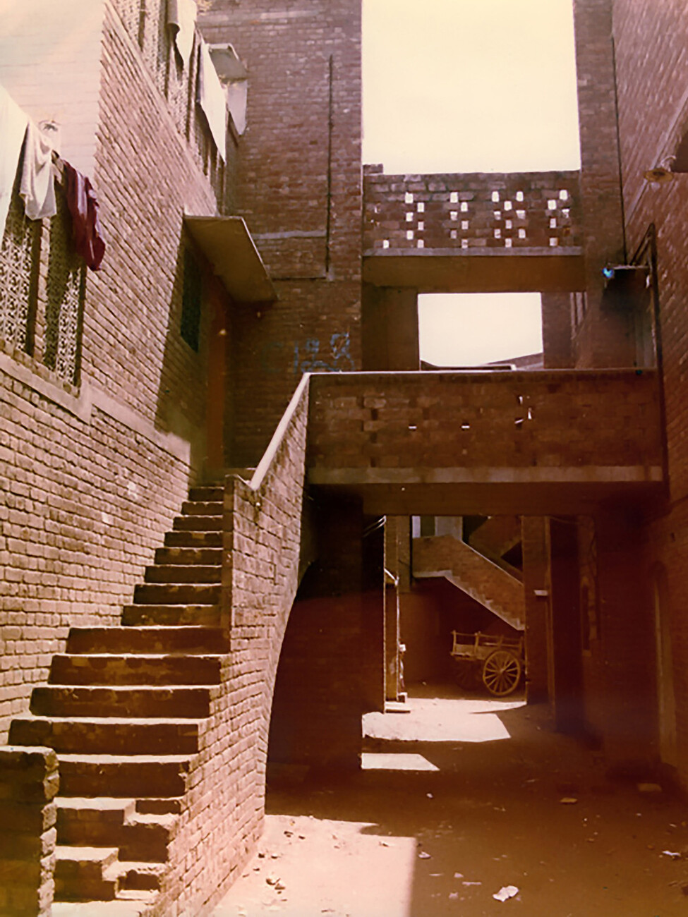 Es ist allerdings keine 180-Grad-Drehung, die Lari 2000 vollführt, keine Umkehr vom Saulus zum Paulus. Architektur mit sozialem Anspruch hat sie schon ihre ganze Karriere lang betrieben: Für das soziale Wohnungsbauprogramm unter Premierminister Zulfikar Ali Bhutto entwirft Lari eine der ersten großen Siedlungen in Lahore: Das Anguri Bagh-Quartier musste rasch Wohnraum für Menschen schaffen, die durch eine Flut obdachlos geworden waren. Lari entwickelt ein einfaches System aus einer Tragstruktur aus Ortbeton und Ziegelwänden, die auch von ungelernten Arbeitern mit dem hergestellt werden kann, was vor Ort verfügbar ist: einfaches Werkzeug, einfache Materialien. Das Ergebnis erinnert nicht ganz zufällig an ihr eigenes Wohnhaus, wenn auch in der Bauweise viel einfacher. Die Positionierung der dreigeschossigen Blöcke in Anguri Bagh sicherte jeder Wohnung gute Belüftung und Belichtung, Höfe und Hausabstände sorgten für Schatten und Klimatisierung, dazu gab es Terrassen für die in der Region wichtige Hühnerhaltung. Auch für dieses Projekt erhält sie internationale Aufmerksamkeit, kommt auf die Shortlist des renommierten Aga Khan-Awards und wird auf der Architekturbiennale in Venedig 1982 gezeigt.