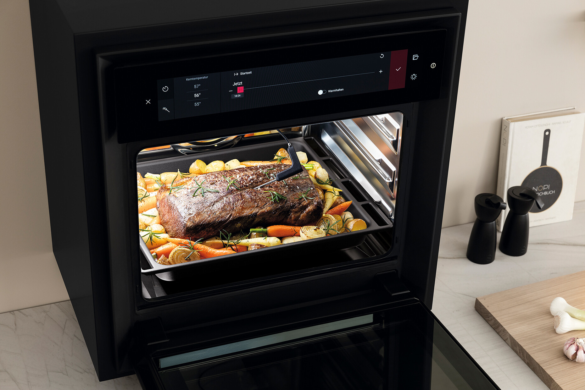 Beim Zubereiten von Speisen soll es im Alltag oft schnell gehen. Der "BORA X BO" besticht durch Einfachheit in der Bedienung und verwirrt nicht durch unnötige Funktionen und komplizierte Vorgänge. Das Produkt überzeugt mit einem automatischen Dampfabzug, einer professionellen Selbstreinigung sowie einer intuitiven Bedienung auf einem mehr als großzügigen 19-Zoll-Display, die so einfach gestaltet ist wie bei einem Smartphone. Dank verschiedener Automatikprogramme sowie voreingestellten Spezialfunktionen fällt das Kochen im "X BO" besonders leicht: Die optimale Temperatur, Garzeit und Dampfzugabe für die jeweiligen Lebensmitteltypen beziehungsweise Gerichte sind hier bereits hinterlegt und können einfach angewählt werden. Kurze Erklärvideos und Informationsfenster helfen bei der Erstbedienung. Die optimale Wärmeverteilung auf allen drei Ebenen des "X BO" sorgt für gleichmäßige Garergebnisse. Dass die Geräte von Bora im Kern funktional gedacht sind, zeigen zudem die automatische Dampfabsaugung sowie der geruchsneutralisierende Aktivkohlefilter im "X BO". Das Beschlagen von Brillengläsern beim Öffnen der Ofentür gehört damit der Vergangenheit an. Auch das Design des "BORA X BO" ist besonders: Mit klarem, edlem Schwarz, hochwertigen Oberflächen aus Glas und Edelstahl sowie einer Multi-Level-Beleuchtung ist der Profi-Dampfbackofen in jeder Küche ein eleganter Hingucker.
