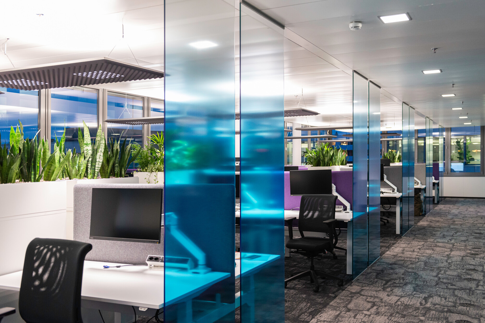 Konzepte für Büroräume waren im Laufe des 20. Jahrhunderts immer wieder großen Veränderungen unterworfen. Die architektonischen Lösungen reichen von der Einzelzelle bis zu mit Cubicles bestückten Großraumbüros. Mittlerweile gehen Architekten nuancierter auf die funktionalen Anforderungen ihrer Bauherren ein. Ein Beispiel ist der neue Firmensitz der British Telecom in Zürich, der mit den Leuchten von Artemide ausgestattet wurde.