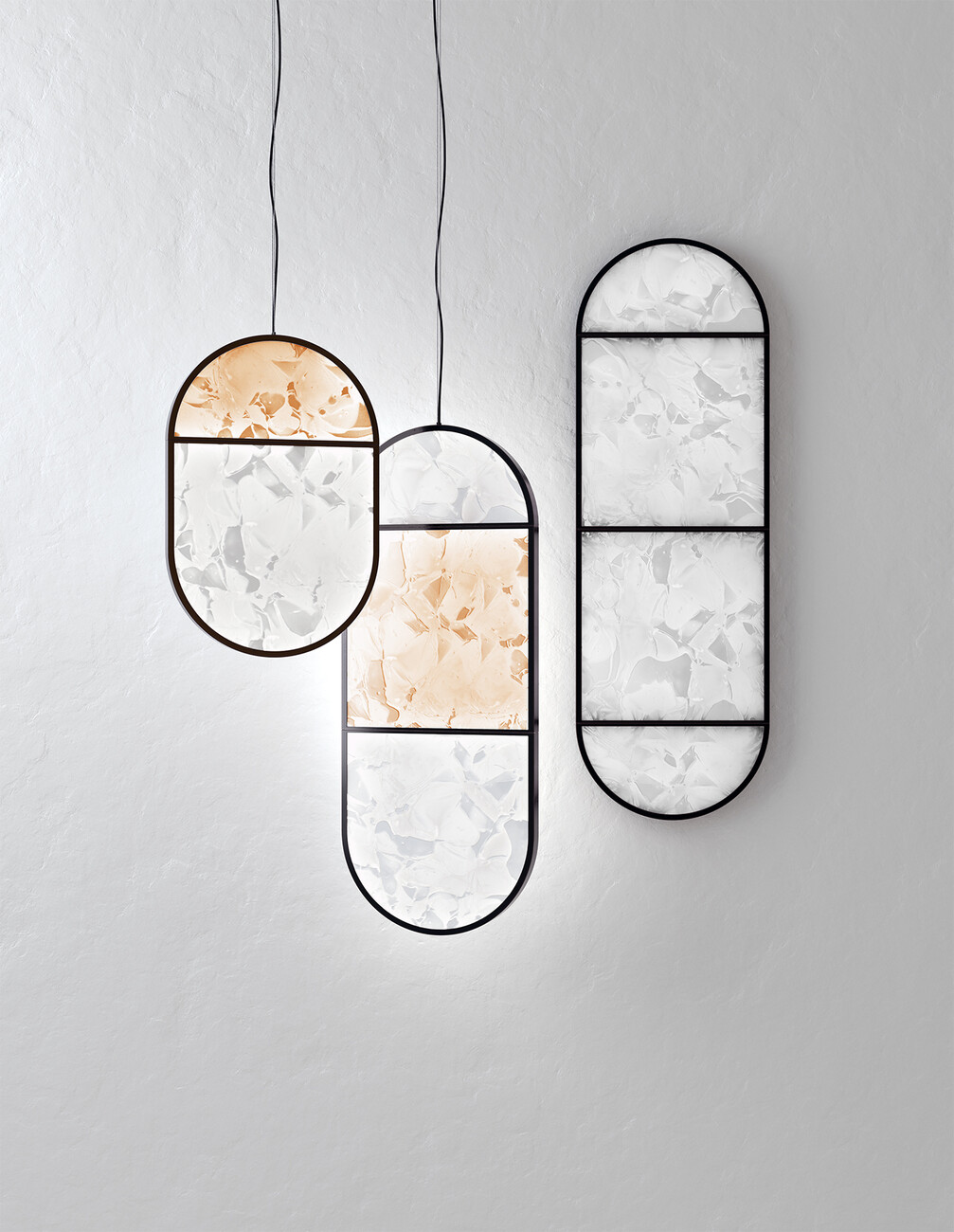Die neue Leuchtenkollektion "Geometric" von Lenka Damova und Boris Klimek für Brokis spielt – ganz wie es ihr Name bereits vermuten lässt – mit den Formen der Geometrie: Kreise und Ovale werden durch Gerade geteilt, Rundbögen und Gitter treffen aufeinander und bilden ungewöhnliche Beleuchtungskörper. Die Strenge der breiten, schwarzen Profile werden aufgelockert durch farbiges Glas, das bei den Pendelleuchten auf jeder Seite in einer anderen Farbe ausgewählt werden kann. Individuell gestaltet ergeben sich so Lichtskulpturen, die sowohl als Solitär wie im Zusammenspiel die Blicke auf sich ziehen. (am)