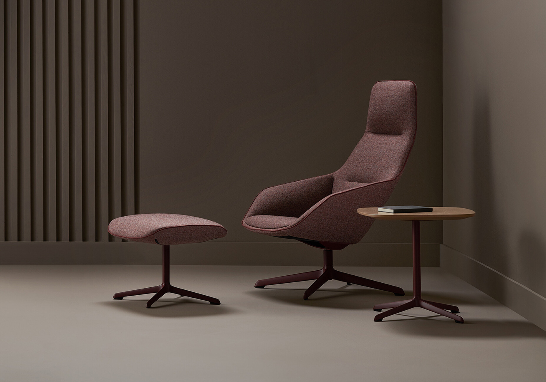 Wie sich Chic, Komfort und Charakter in einem Produkt ideal verknüpfen lassen, zeigt das Designerduo jehs+laub mit den Sesseln "ray soft lounge" für Brunner: Eine sanft gekurvte, kissenartige Vollpolsterschale bietet die Basis, die Armlehnen sind clever in diese integriert. Sowohl in der Hochlehner- wie in der Niedriglehner-Variante stützt die Form die sitzende Person ideal, ohne selbst zu viel Raum einzunehmen. Optional bietet diese auch eine praktische Rückstellautomatik.